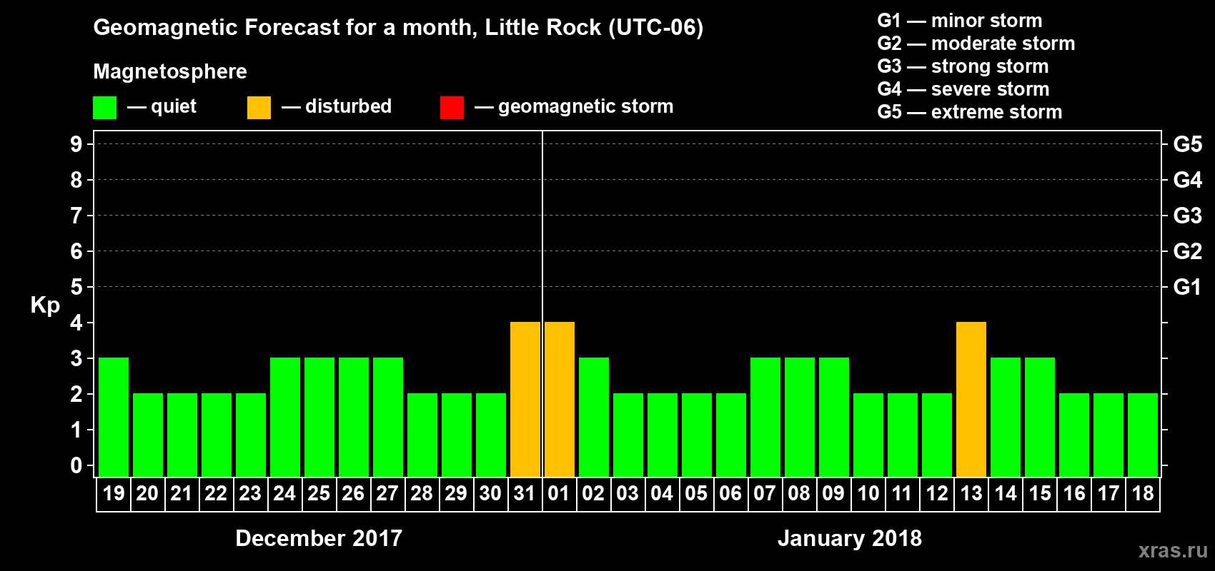 Geomagnetic storm forecast in Little Rock for Dec 19, 2017