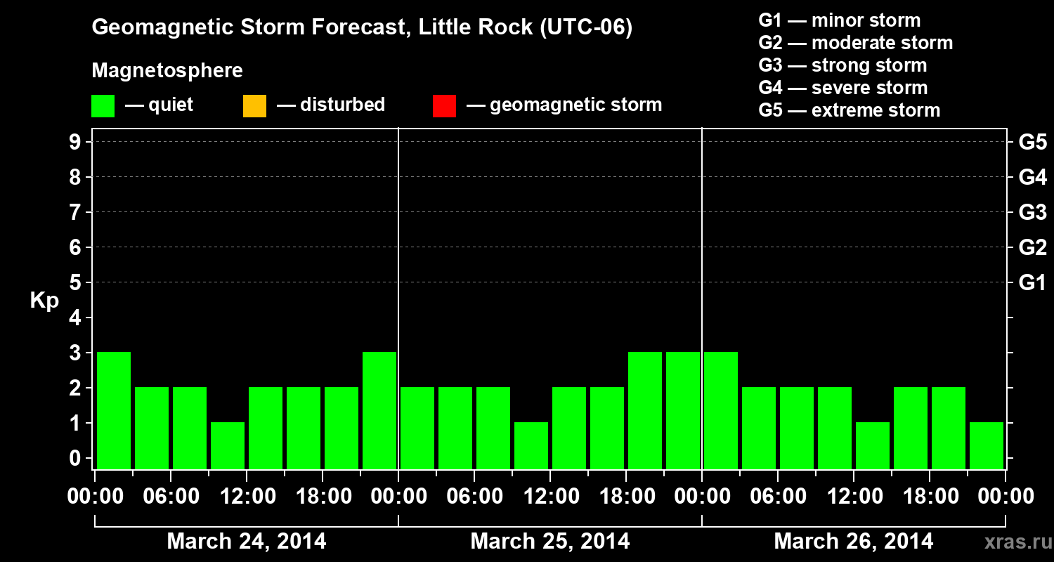 Geomagnetic storm forecast in Little Rock for Mar 24, 2014