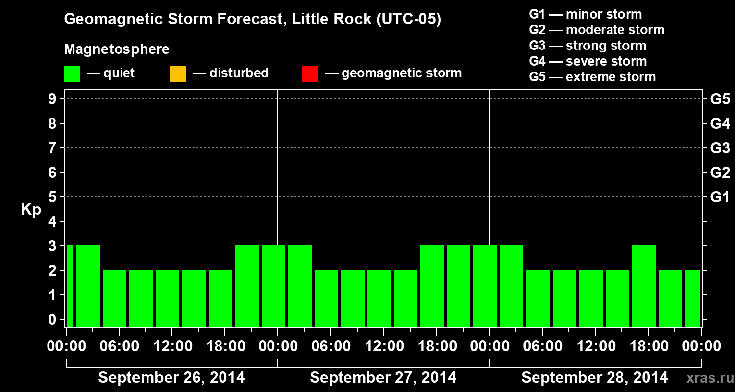 Geomagnetic storm forecast in Little Rock for Sep 26, 2014