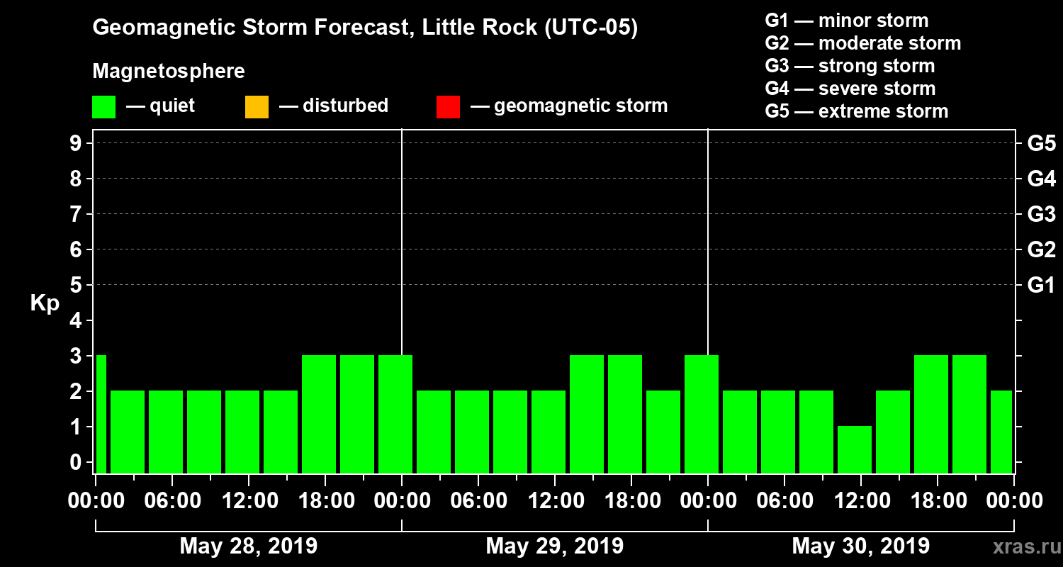 Geomagnetic storm forecast in Little Rock for May 28, 2019