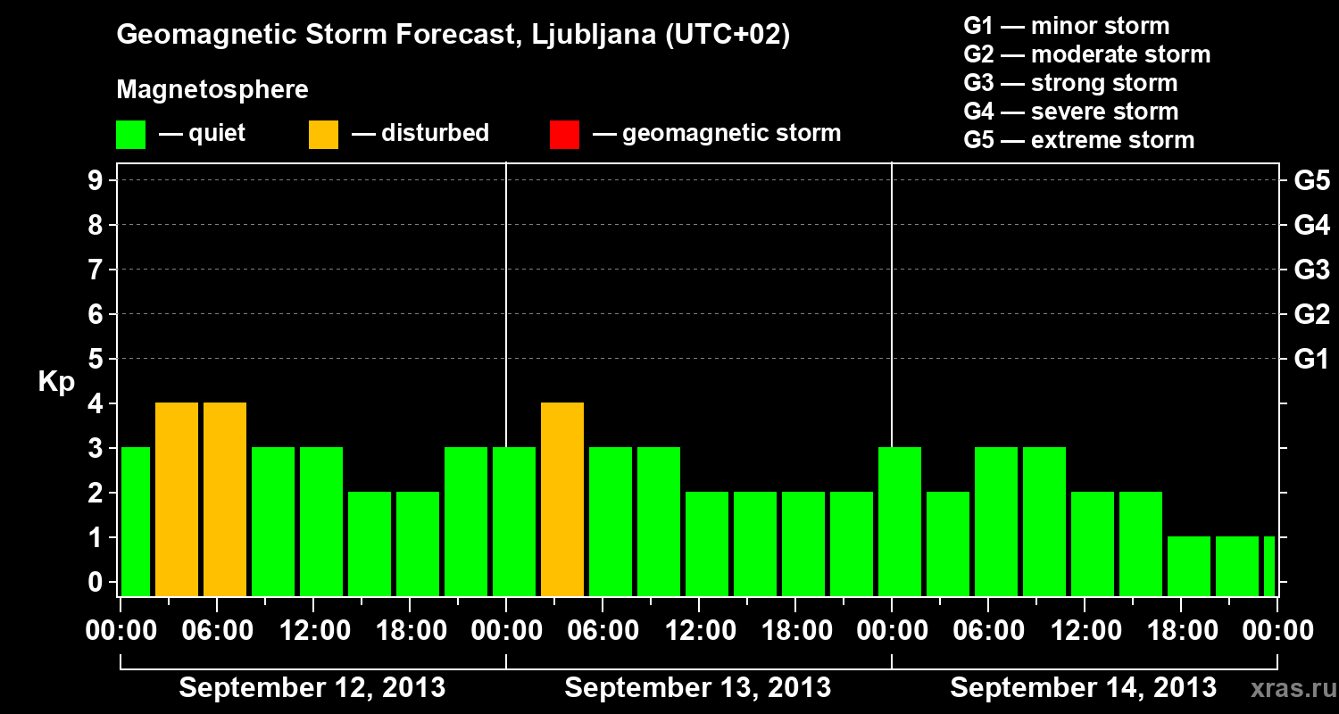 Geomagnetic storm forecast in Ljubljana for Sep 12, 2013
