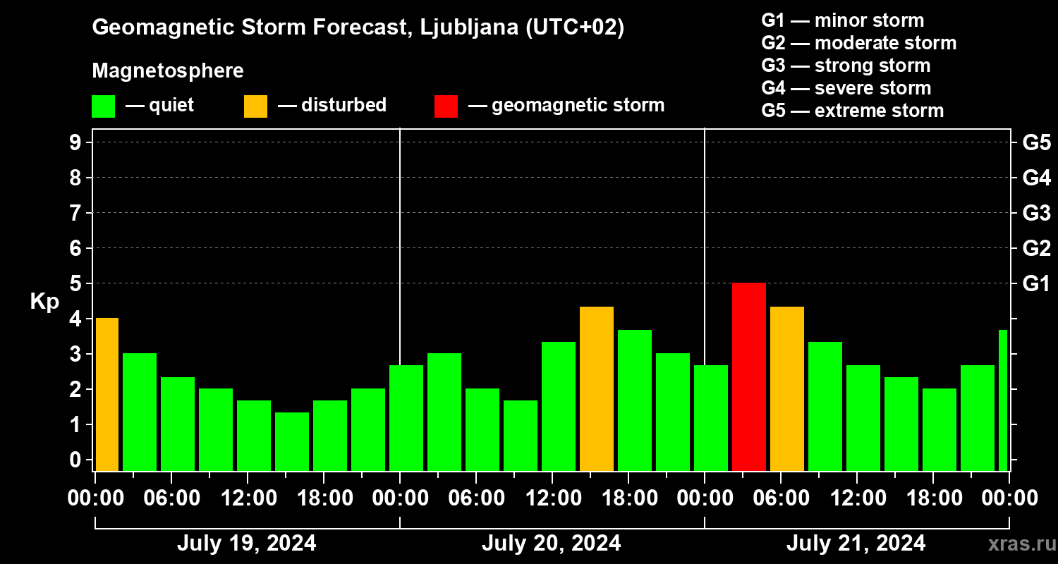 Geomagnetic storm forecast in Ljubljana for Jul 19, 2024