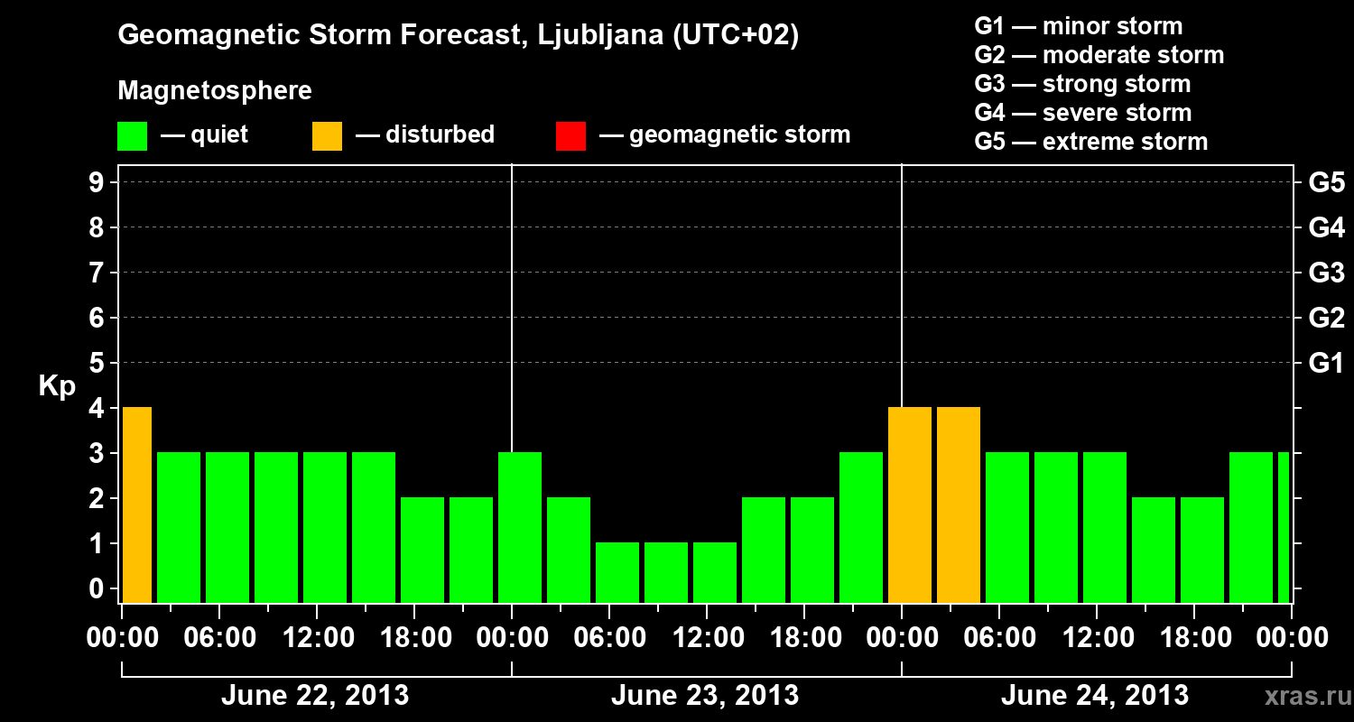 Geomagnetic storm forecast in Ljubljana for Jun 22, 2013