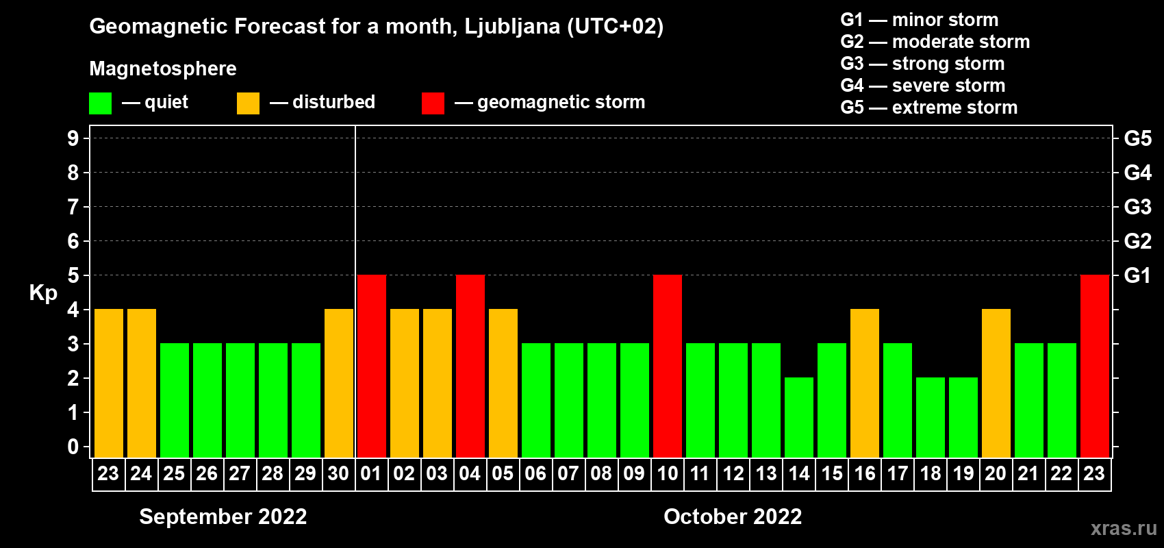 Geomagnetic storm forecast in Ljubljana for Sep 23, 2022