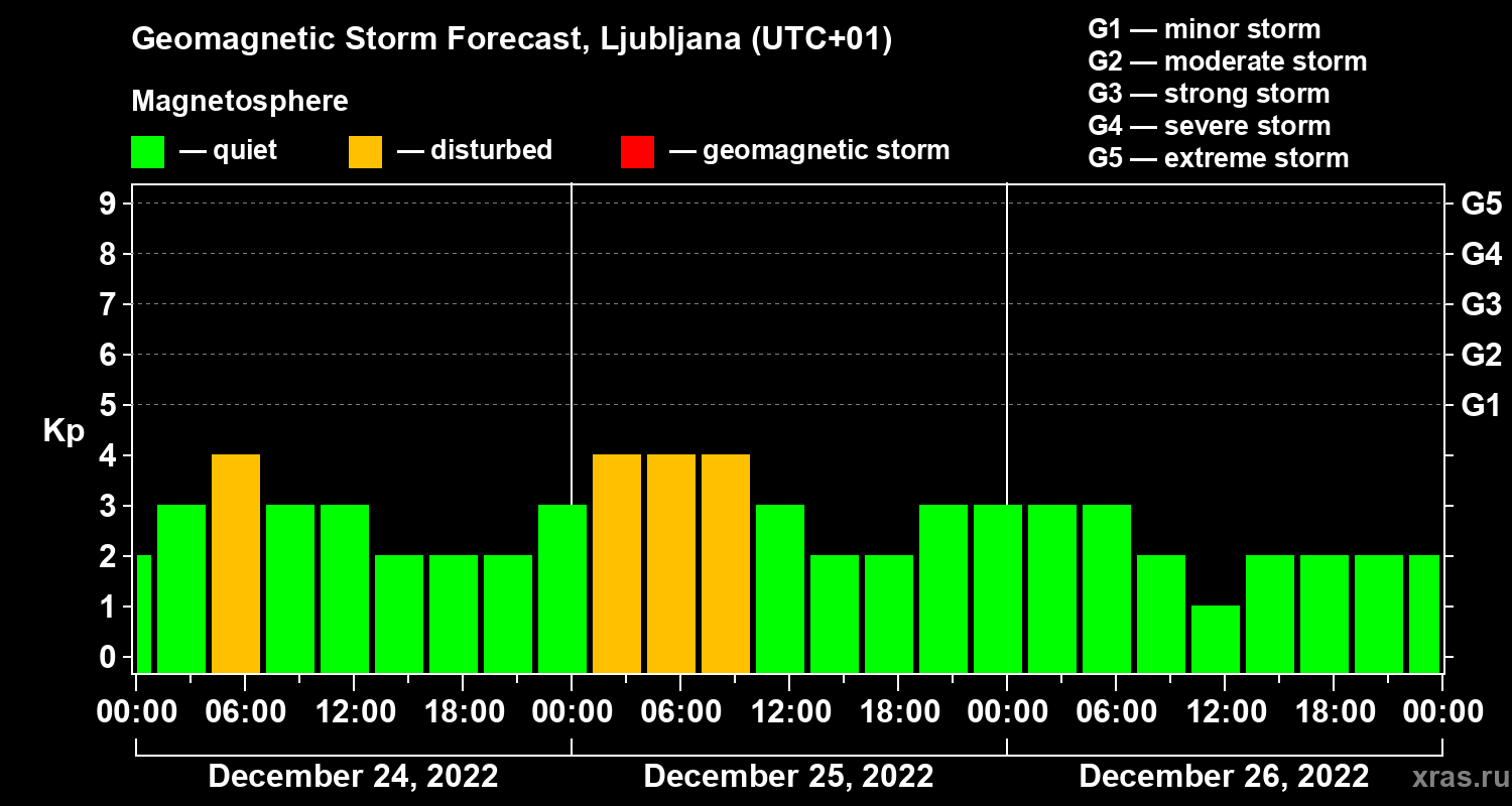 Geomagnetic storm forecast in Ljubljana for Dec 24, 2022
