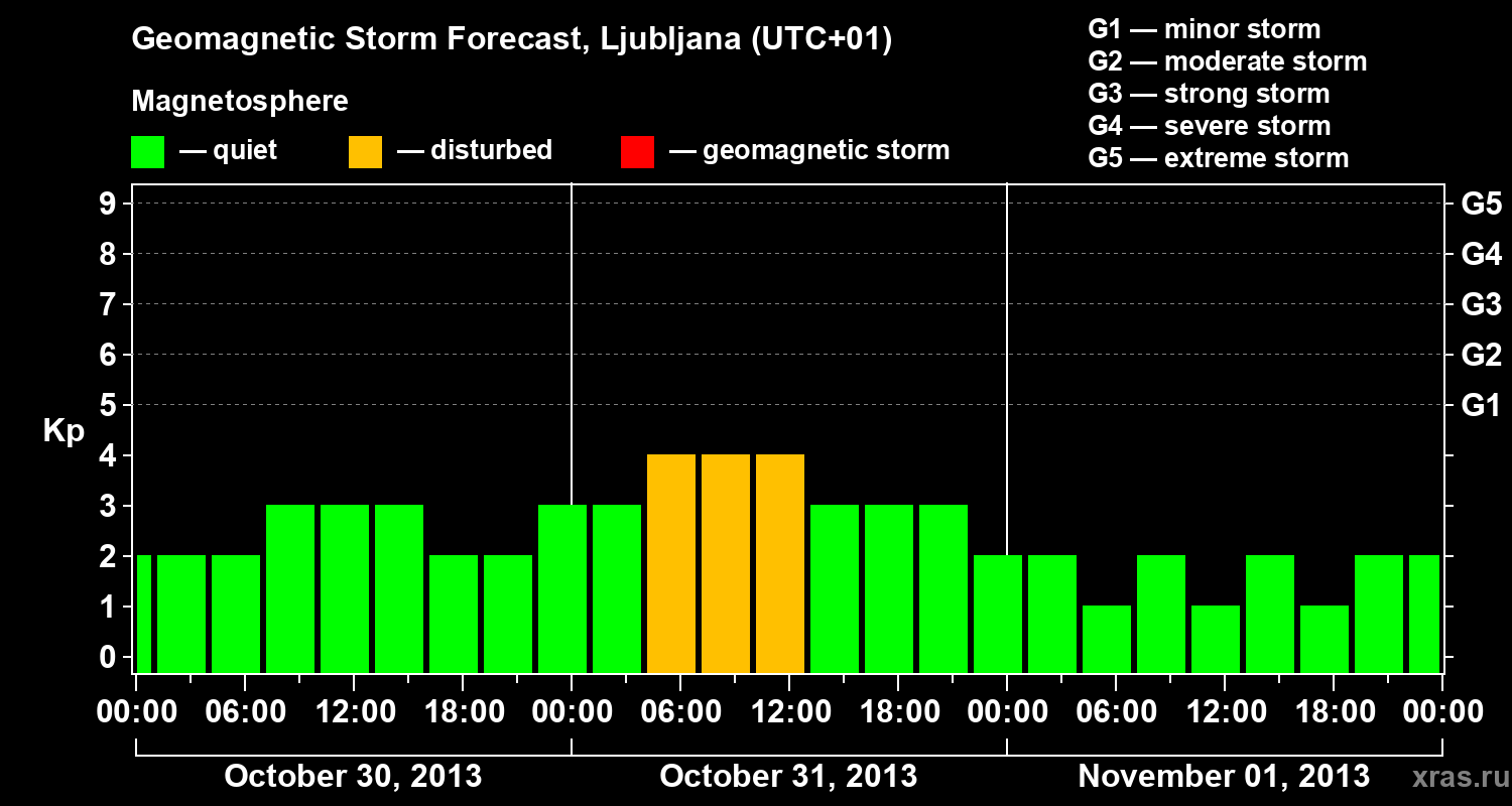 Geomagnetic storm forecast in Ljubljana for Oct 30, 2013