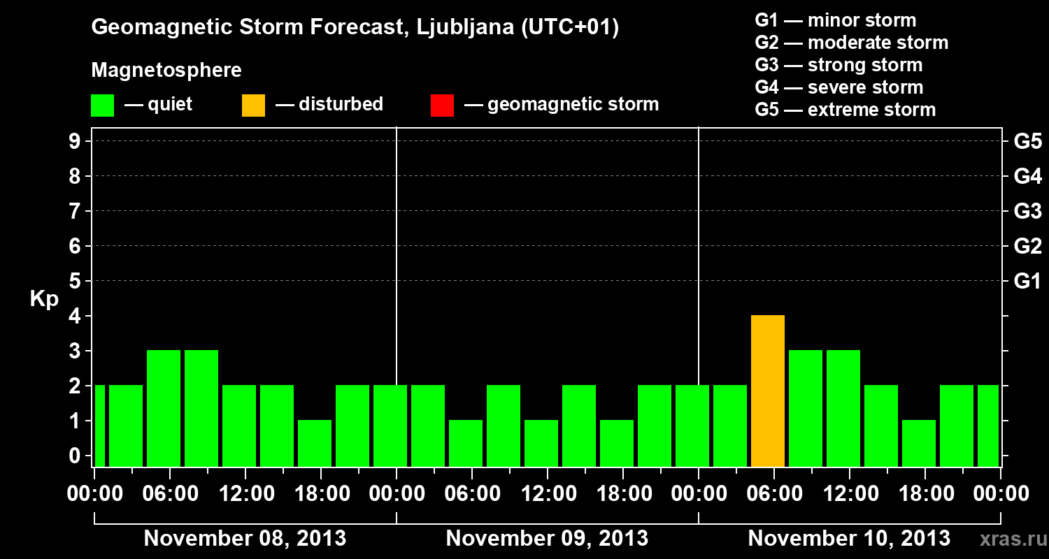 Geomagnetic storm forecast in Ljubljana for Nov 08, 2013
