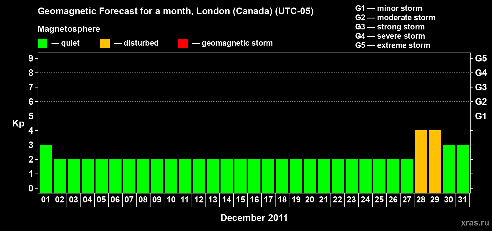 Geomagnetic storm forecast in London (Canada) for Dec 01, 2011