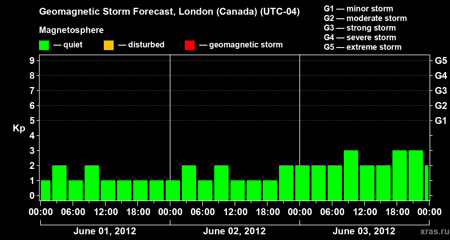 Geomagnetic storm forecast in London (Canada) for Jun 01, 2012
