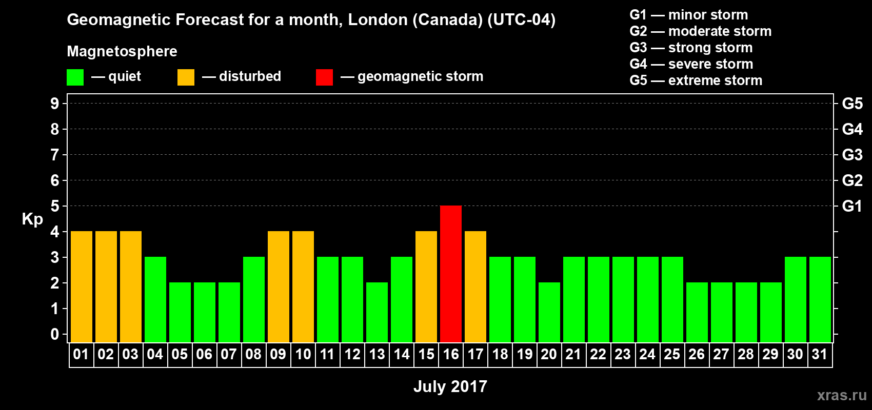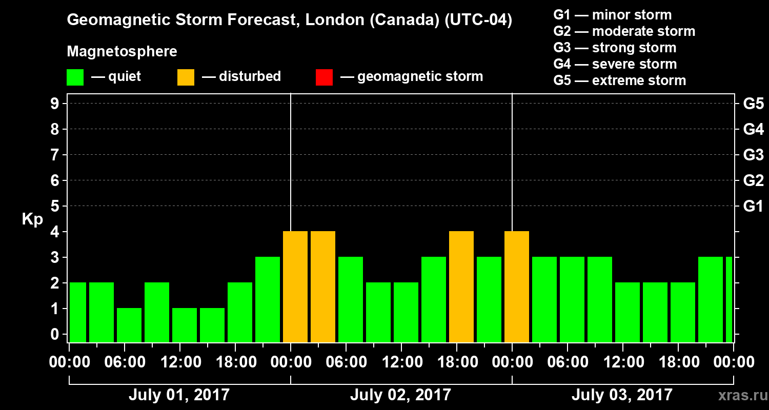 Geomagnetic storm forecast in London (Canada) for Jul 01, 2017