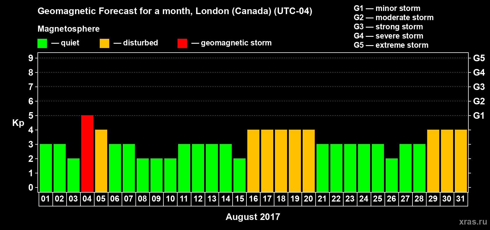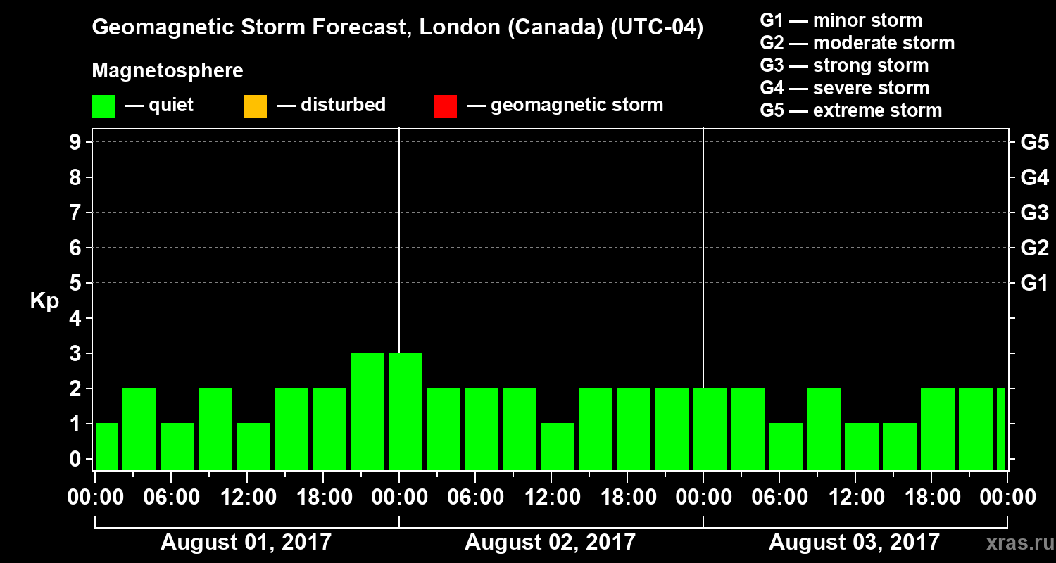 Geomagnetic storm forecast in London (Canada) for Aug 01, 2017