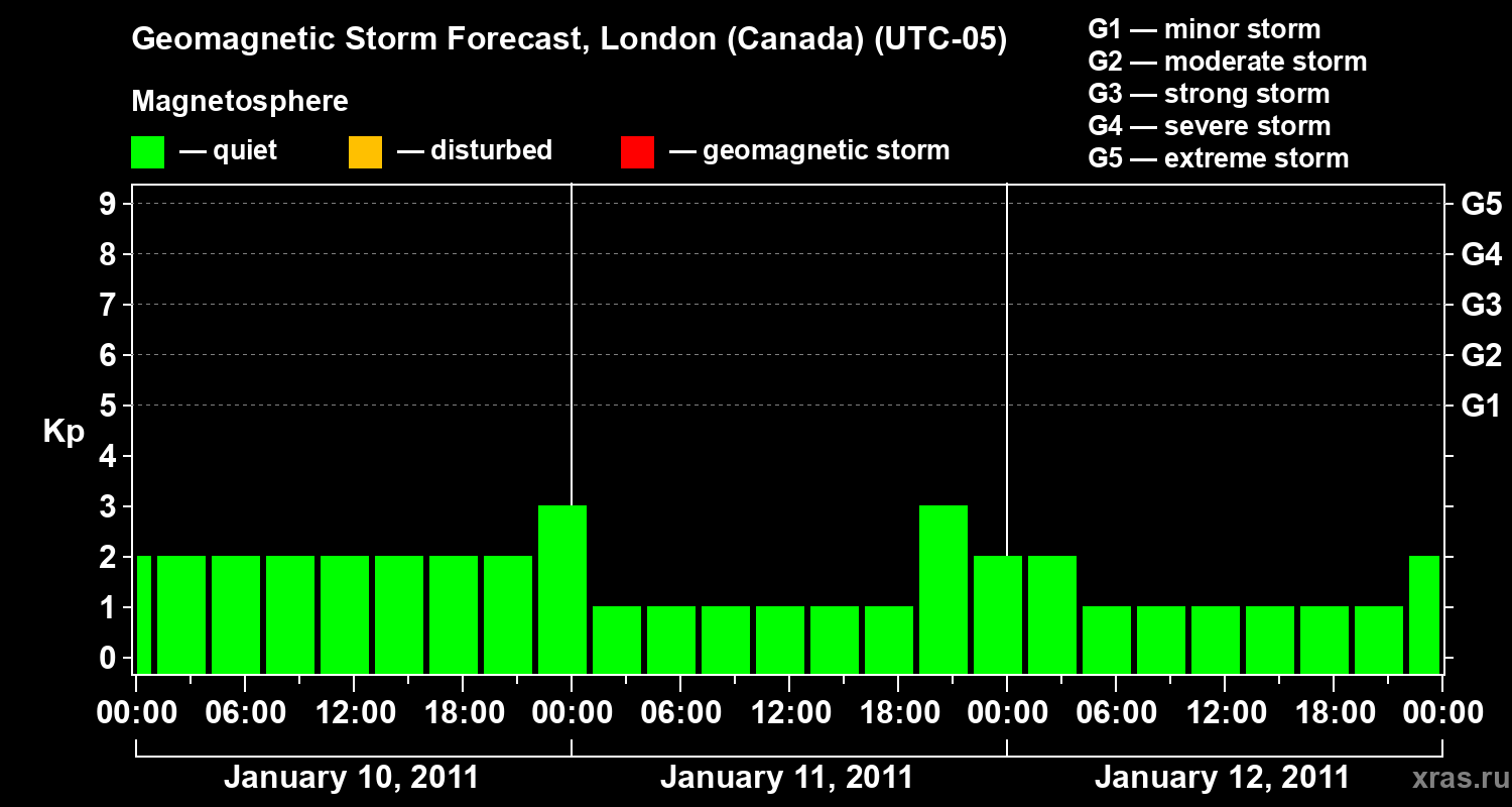 Geomagnetic storm forecast in London (Canada) for Jan 10, 2011