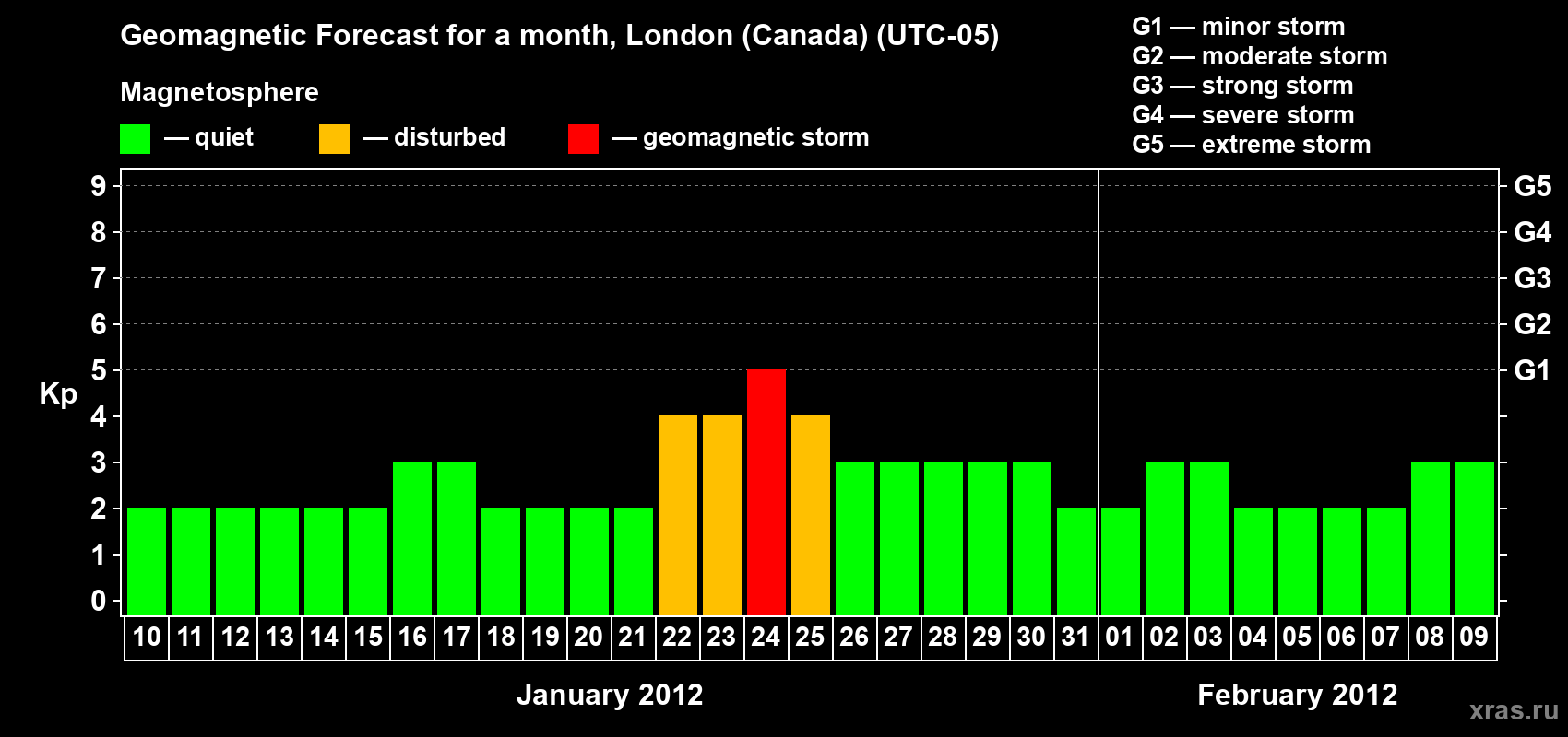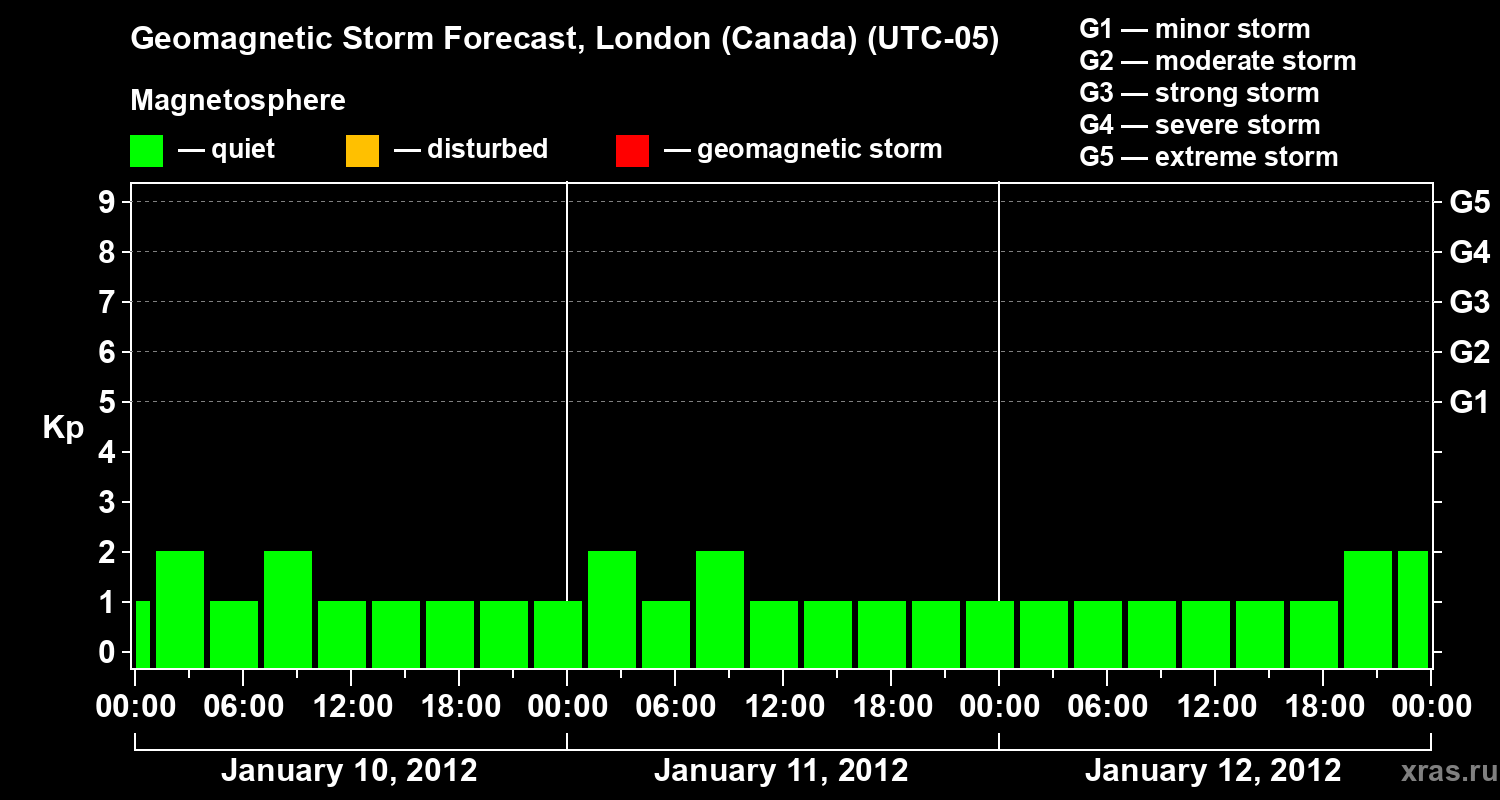 Geomagnetic storm forecast in London (Canada) for Jan 10, 2012