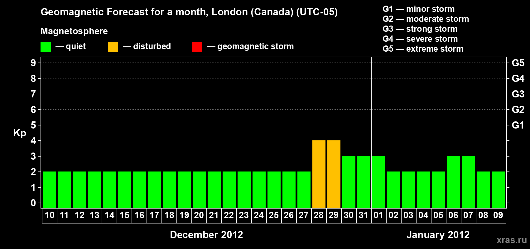 Geomagnetic storm forecast in London (Canada) for Dec 10, 2011