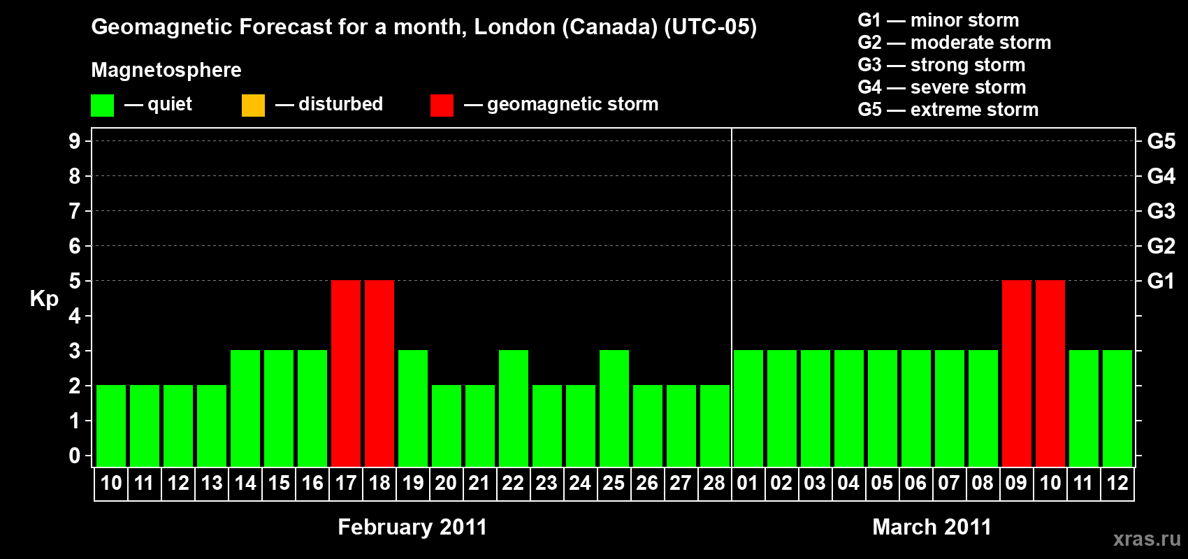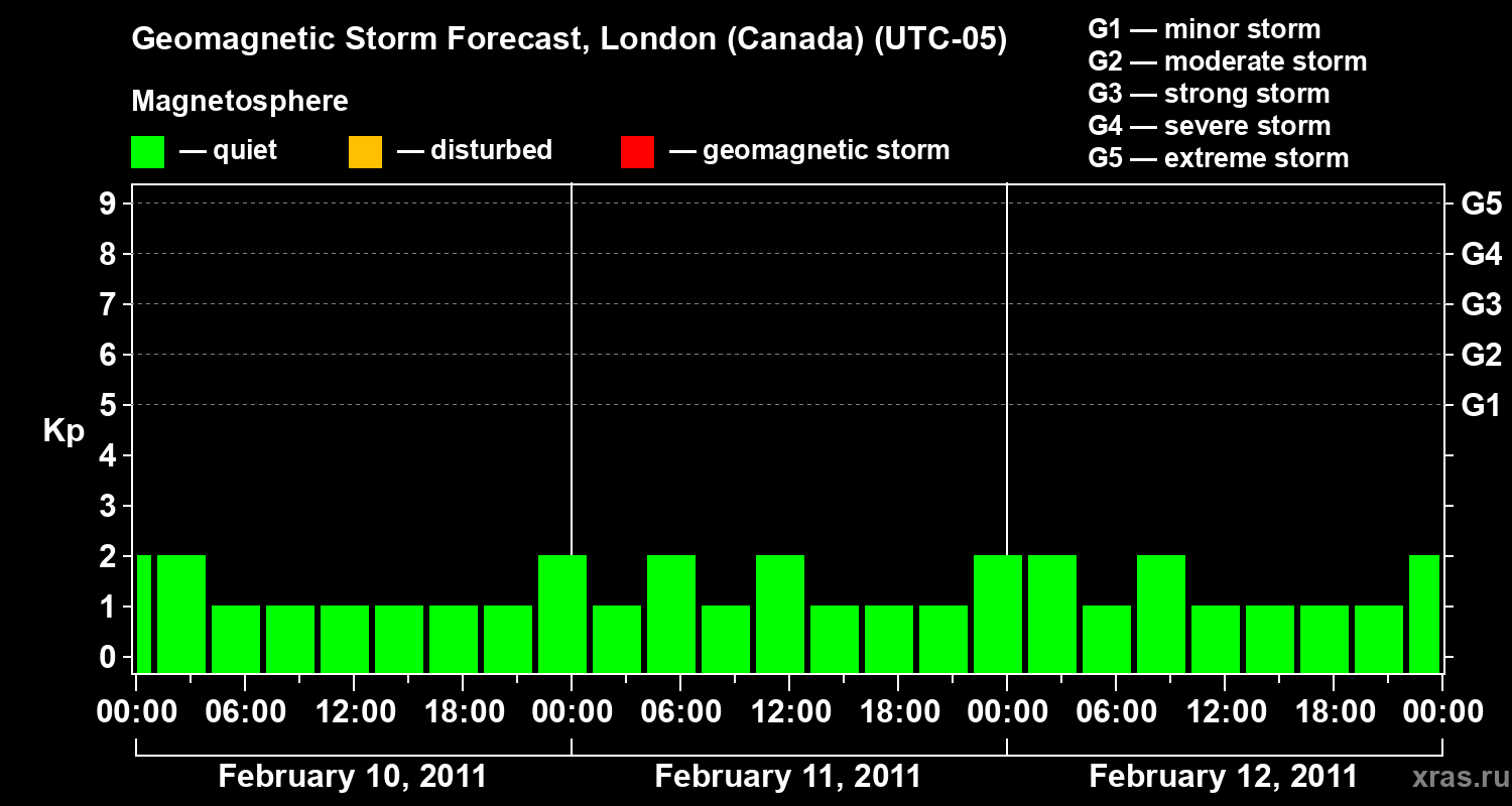 Geomagnetic storm forecast in London (Canada) for Feb 10, 2011