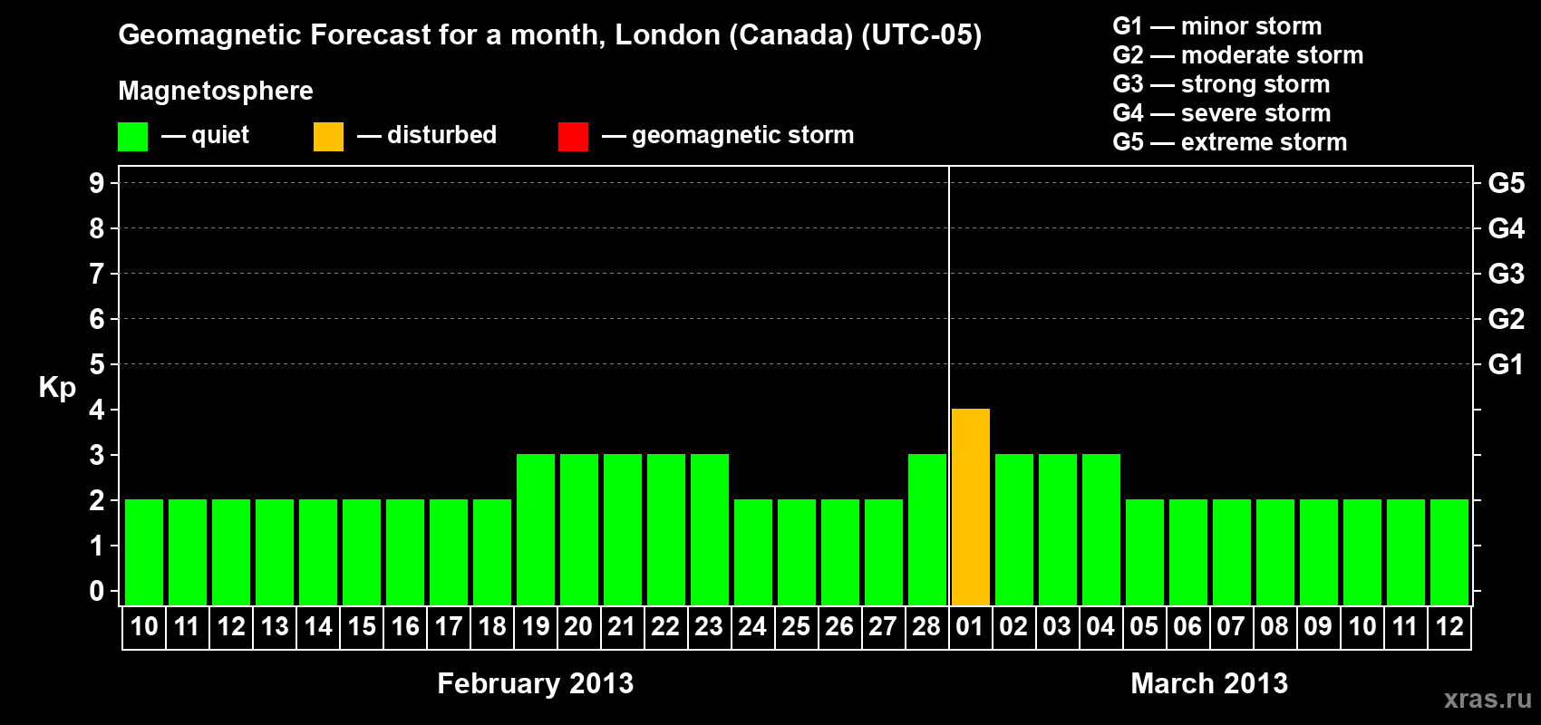 Geomagnetic storm forecast in London (Canada) for Feb 10, 2013