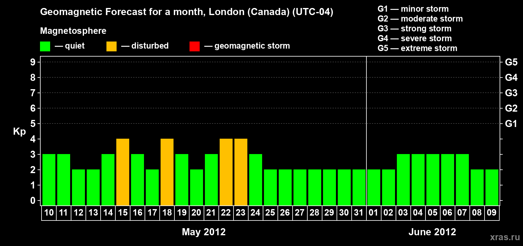 Geomagnetic storm forecast in London (Canada) for May 10, 2012