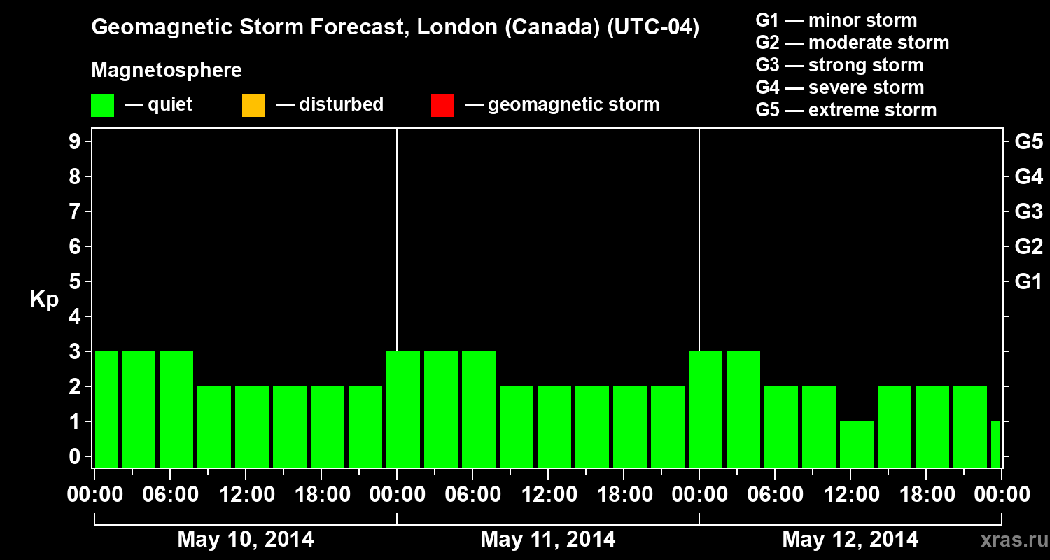 Geomagnetic storm forecast in London (Canada) for May 10, 2014