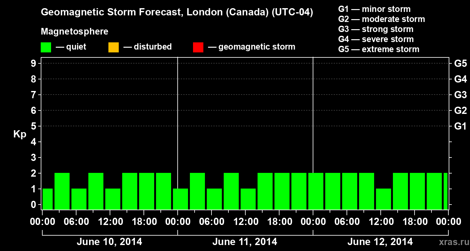 Geomagnetic storm forecast in London (Canada) for Jun 10, 2014