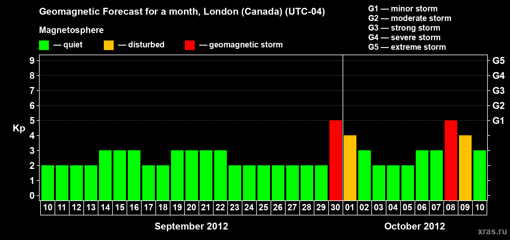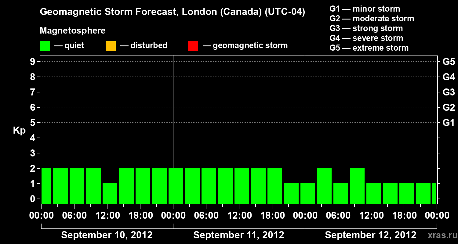 Geomagnetic storm forecast in London (Canada) for Sep 10, 2012