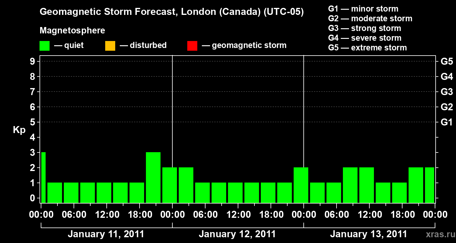 Geomagnetic storm forecast in London (Canada) for Jan 11, 2011