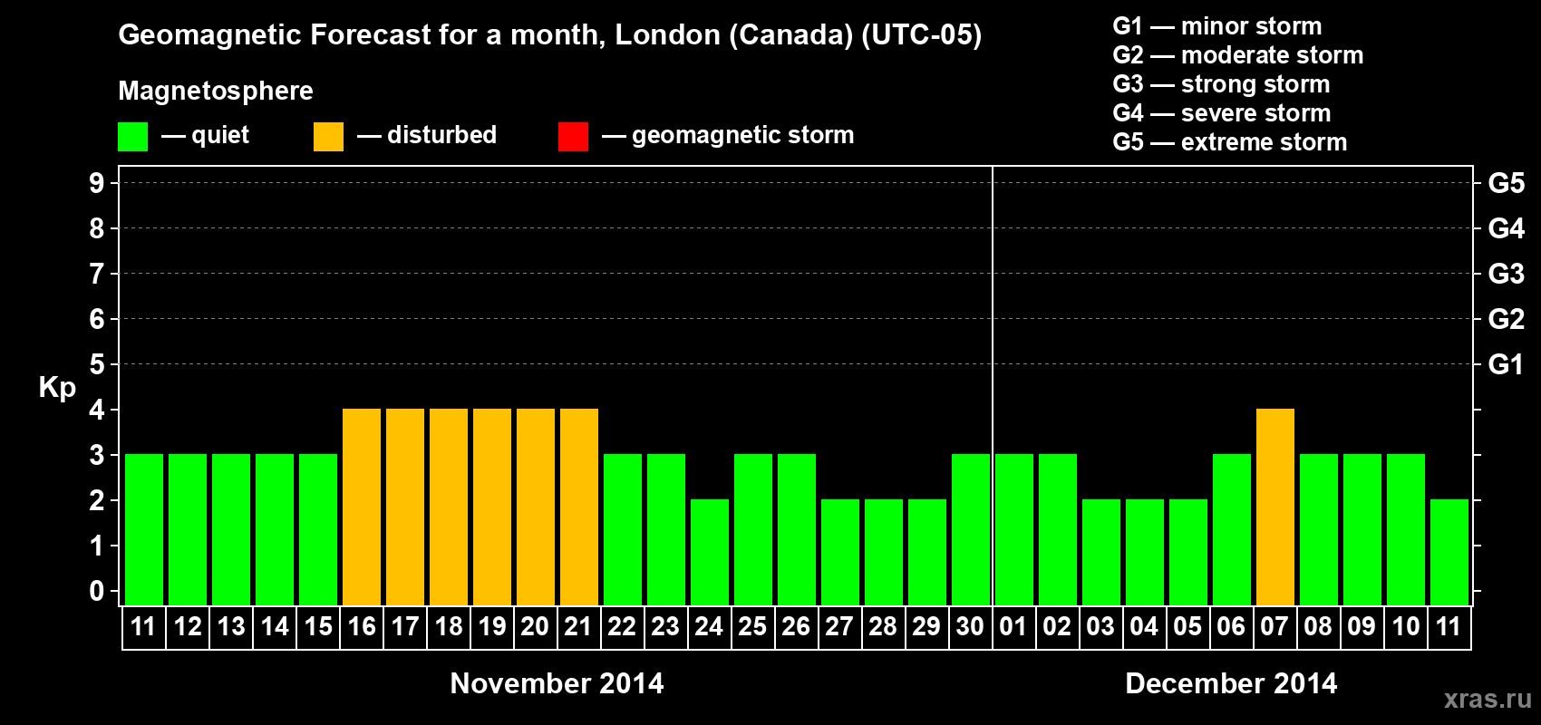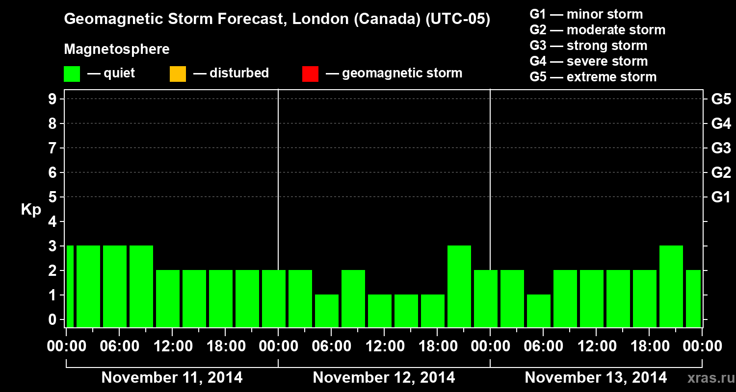 Geomagnetic storm forecast in London (Canada) for Nov 11, 2014