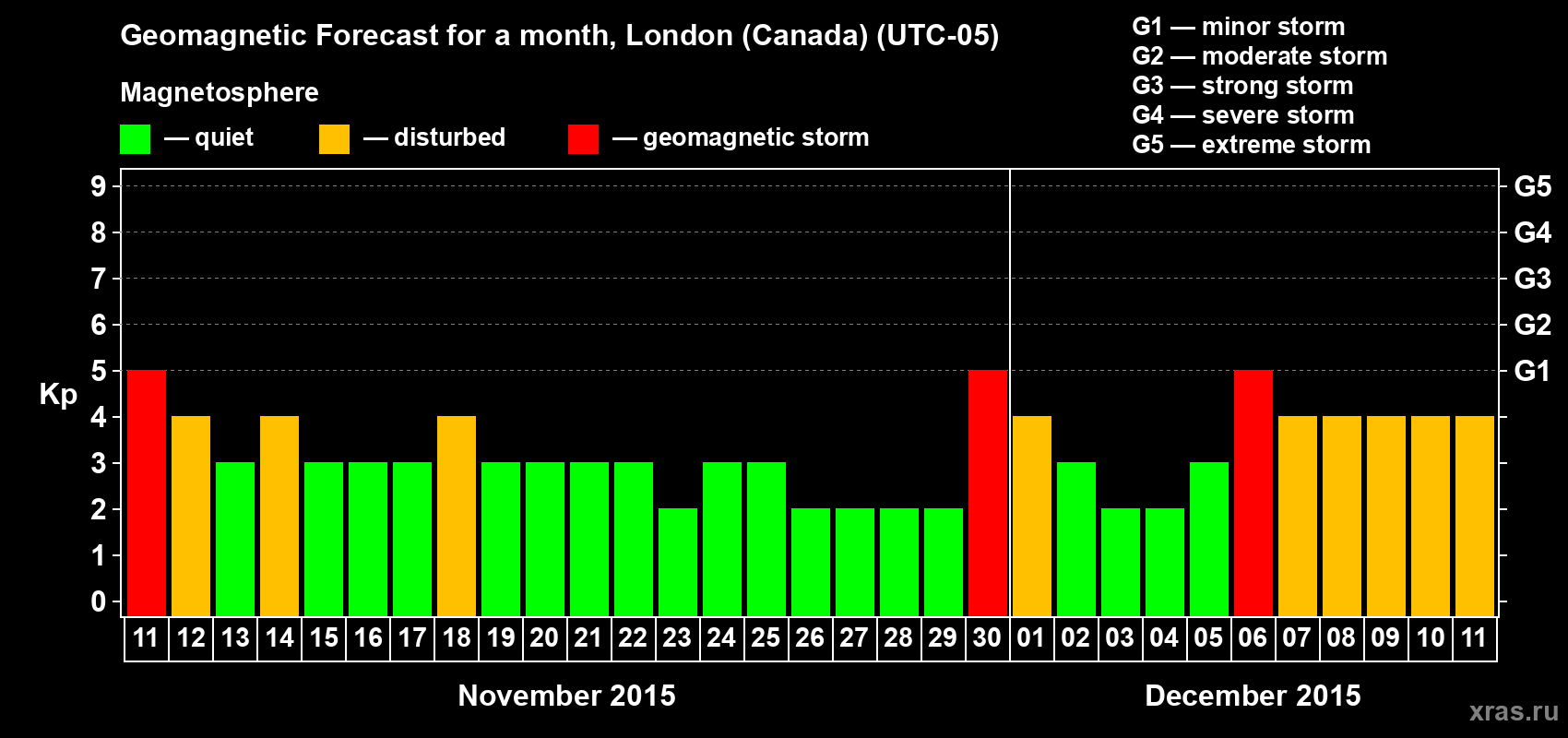 Geomagnetic storm forecast in London (Canada) for Nov 11, 2015