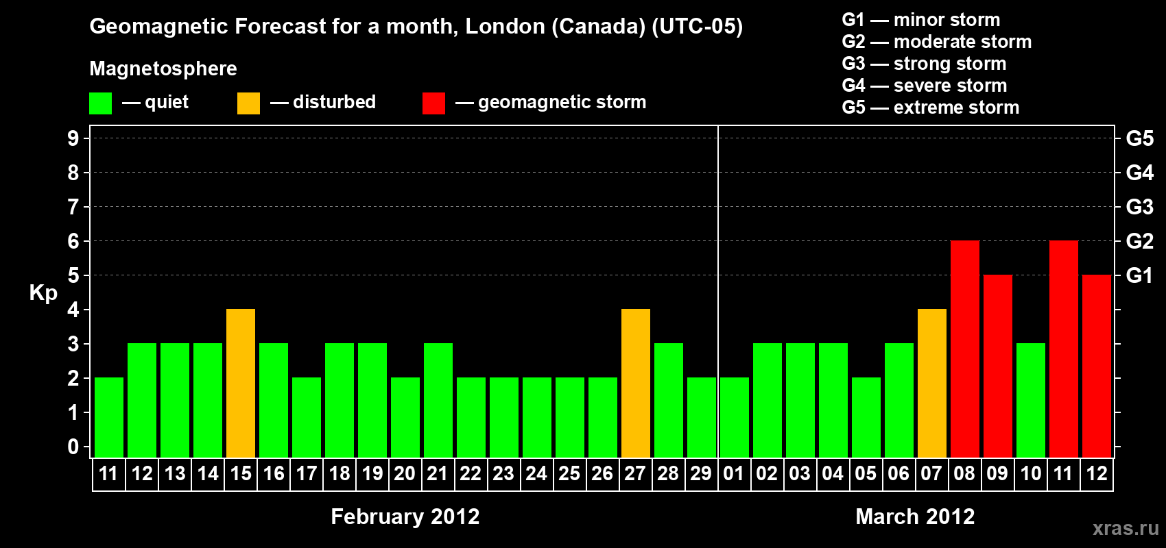 Geomagnetic storm forecast in London (Canada) for Feb 11, 2012