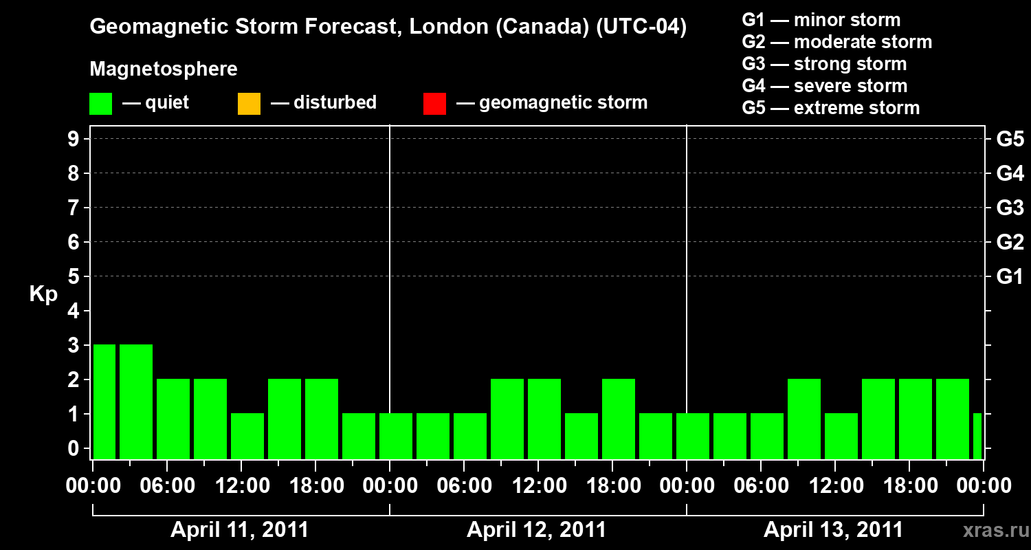 Geomagnetic activity forecast in London (Canada) — Apr 11, 2011