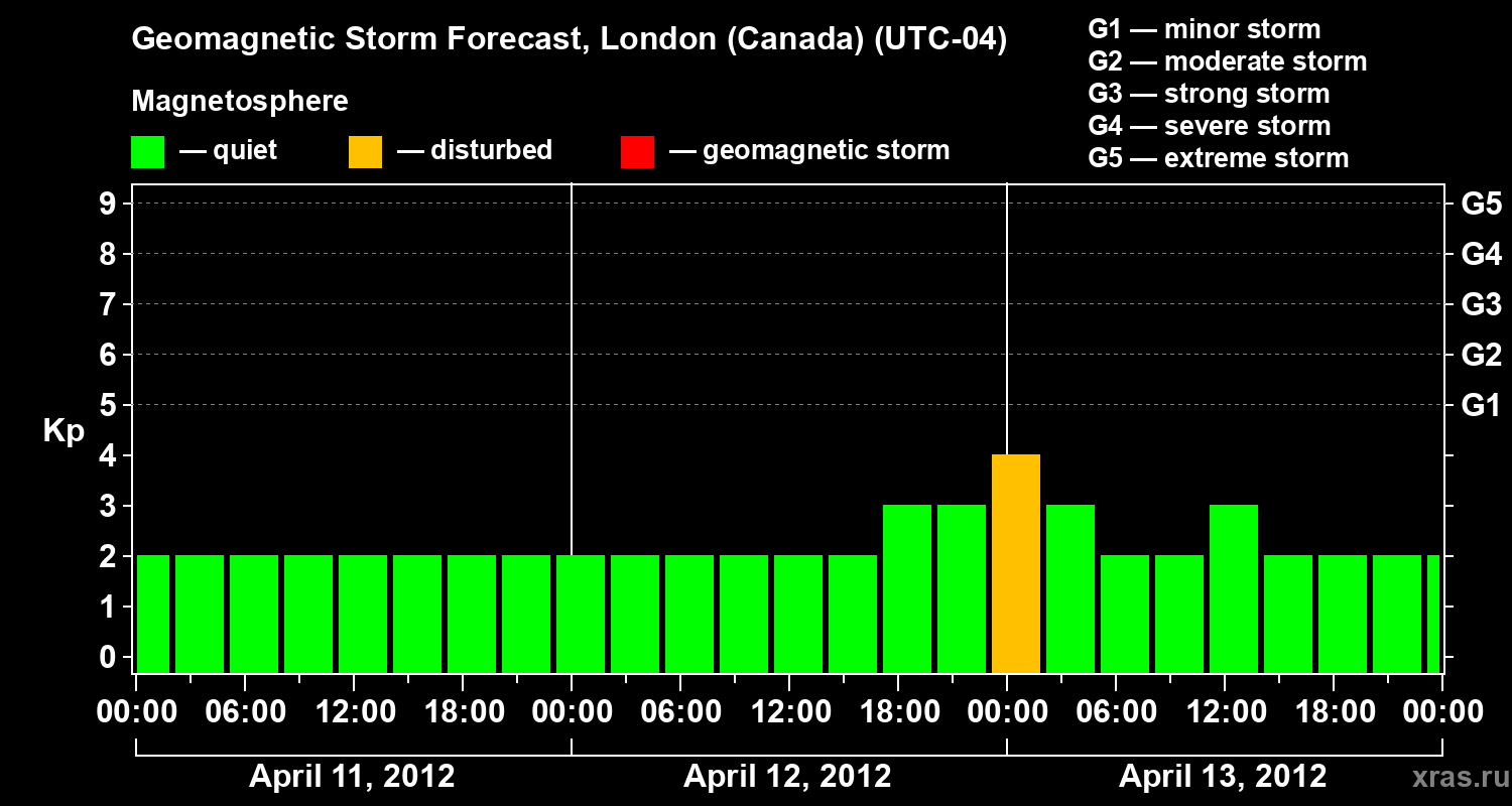 Geomagnetic storm forecast in London (Canada) for Apr 11, 2012