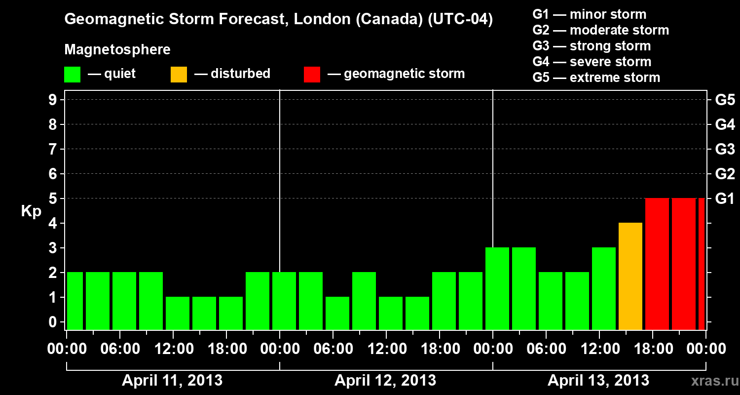 Geomagnetic storm forecast in London (Canada) for Apr 11, 2013