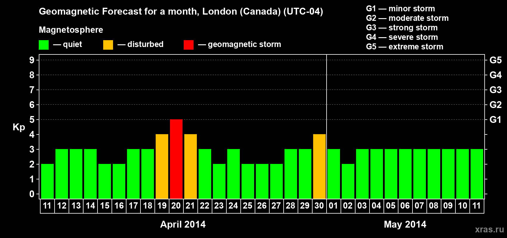 Geomagnetic storm forecast in London (Canada) for Apr 11, 2014