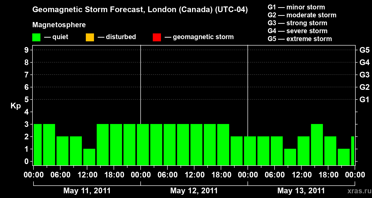 Geomagnetic activity forecast in London (Canada) — May 11, 2011