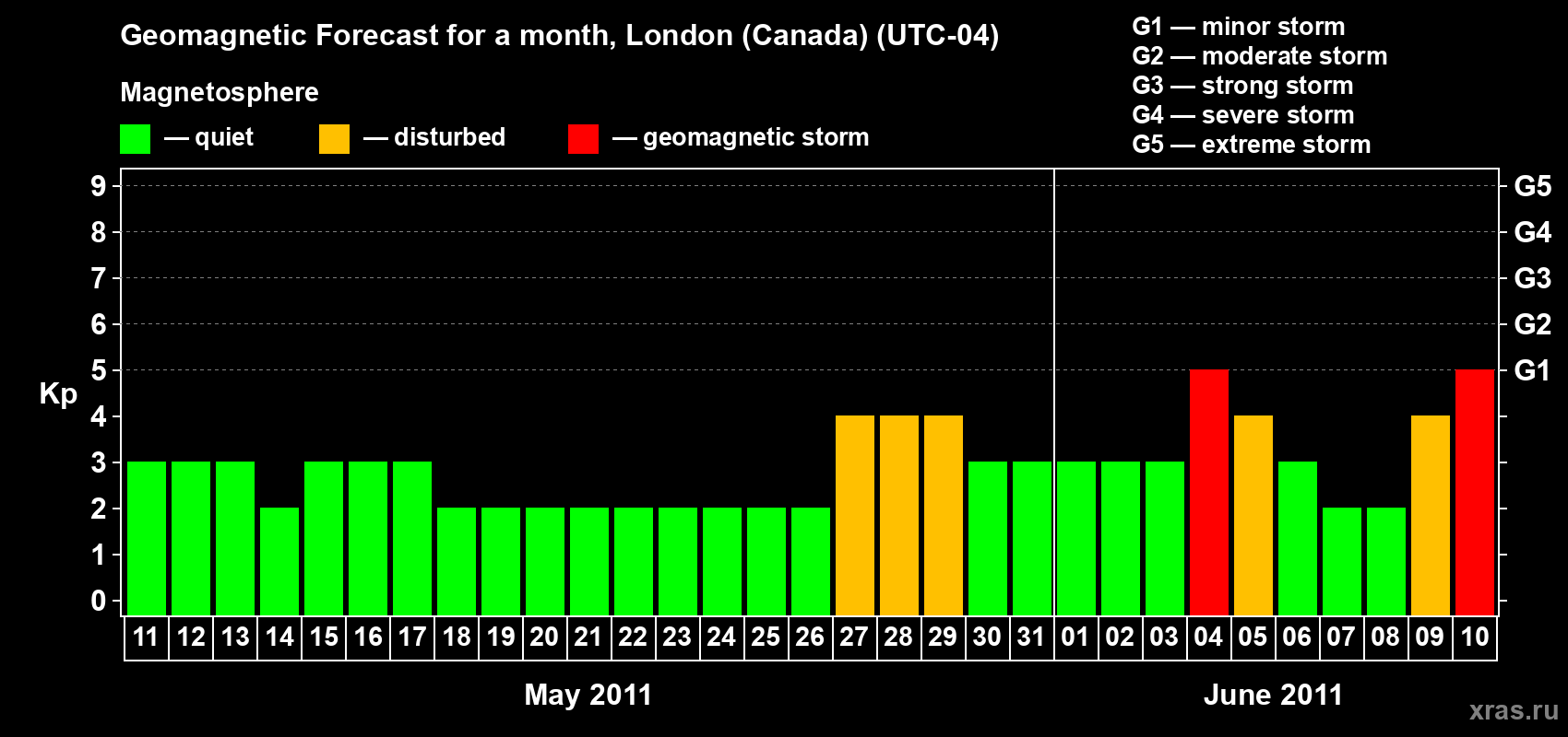 Geomagnetic storm forecast in London (Canada) for May 11, 2011