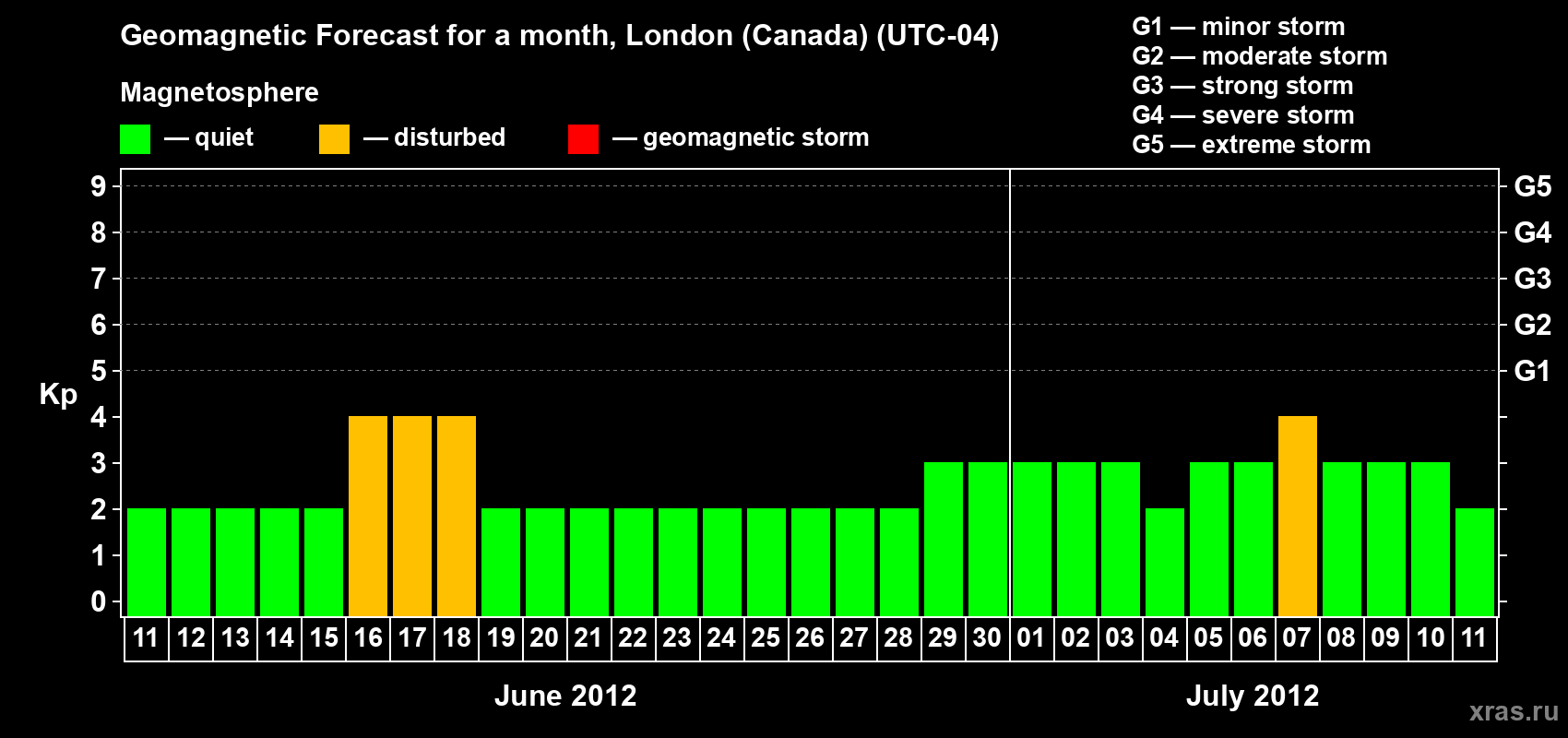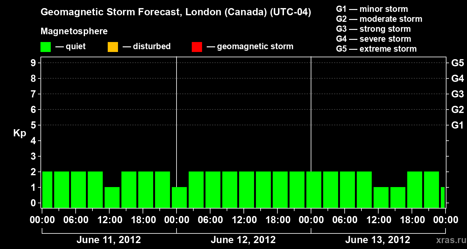 Geomagnetic storm forecast in London (Canada) for Jun 11, 2012