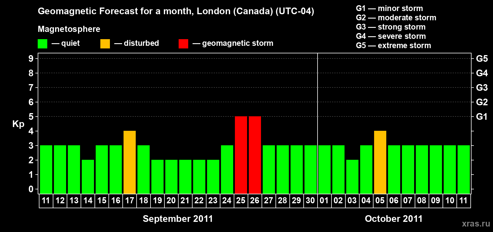 Geomagnetic storm forecast in London (Canada) for Sep 11, 2011