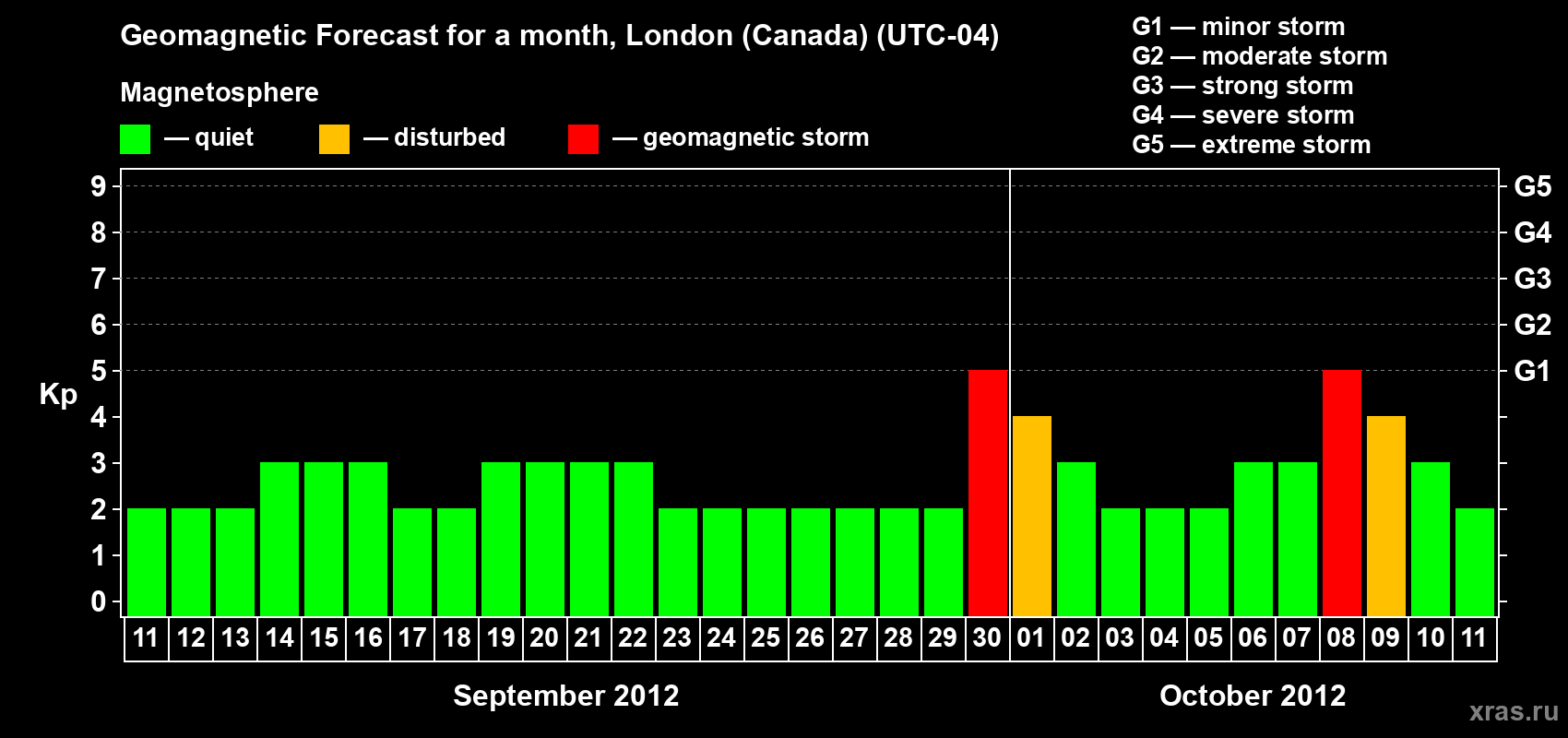 Geomagnetic storm forecast in London (Canada) for Sep 11, 2012