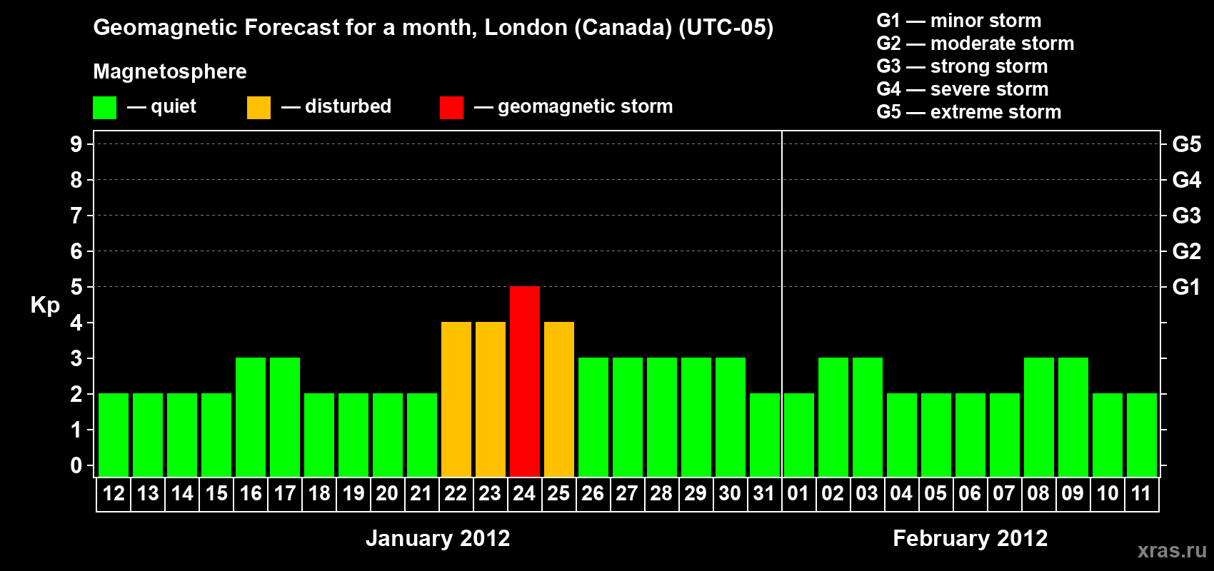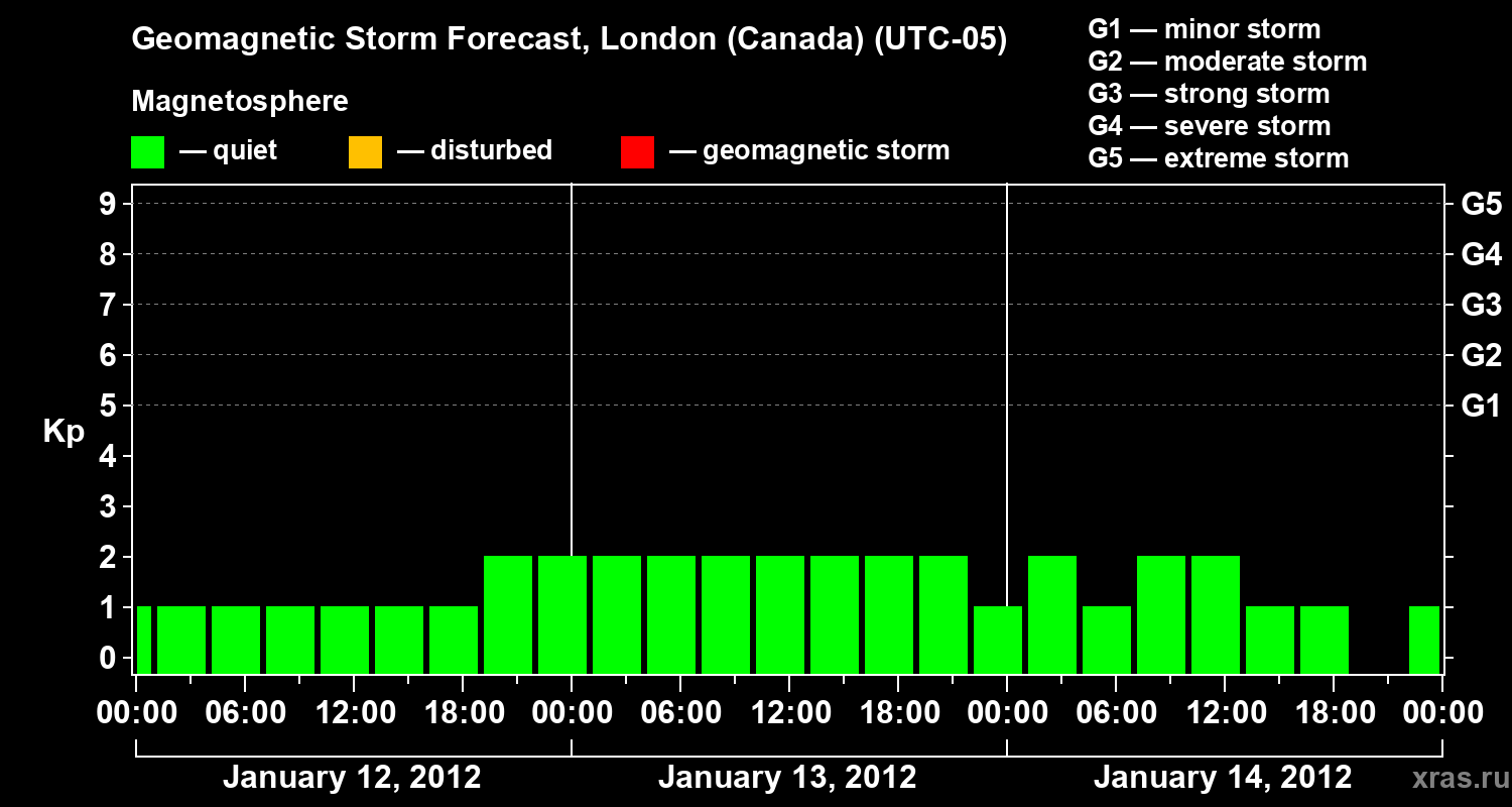 Geomagnetic storm forecast in London (Canada) for Jan 12, 2012