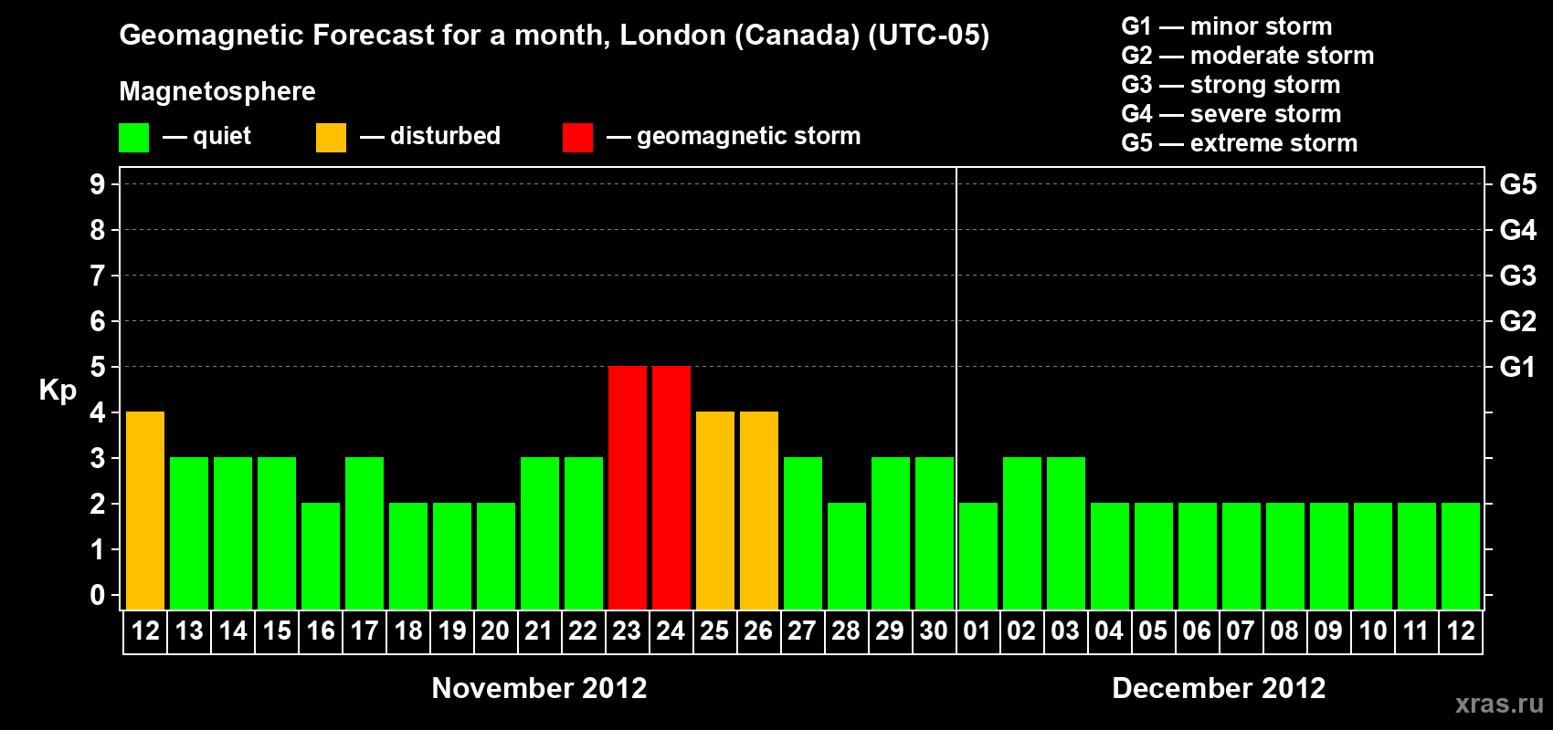 Geomagnetic storm forecast in London (Canada) for Nov 12, 2012