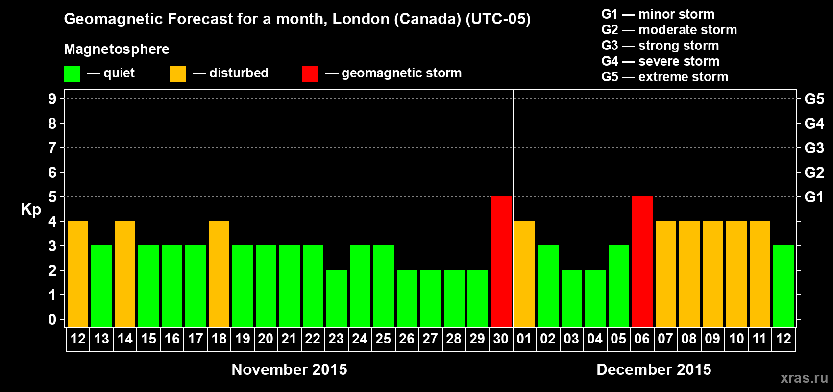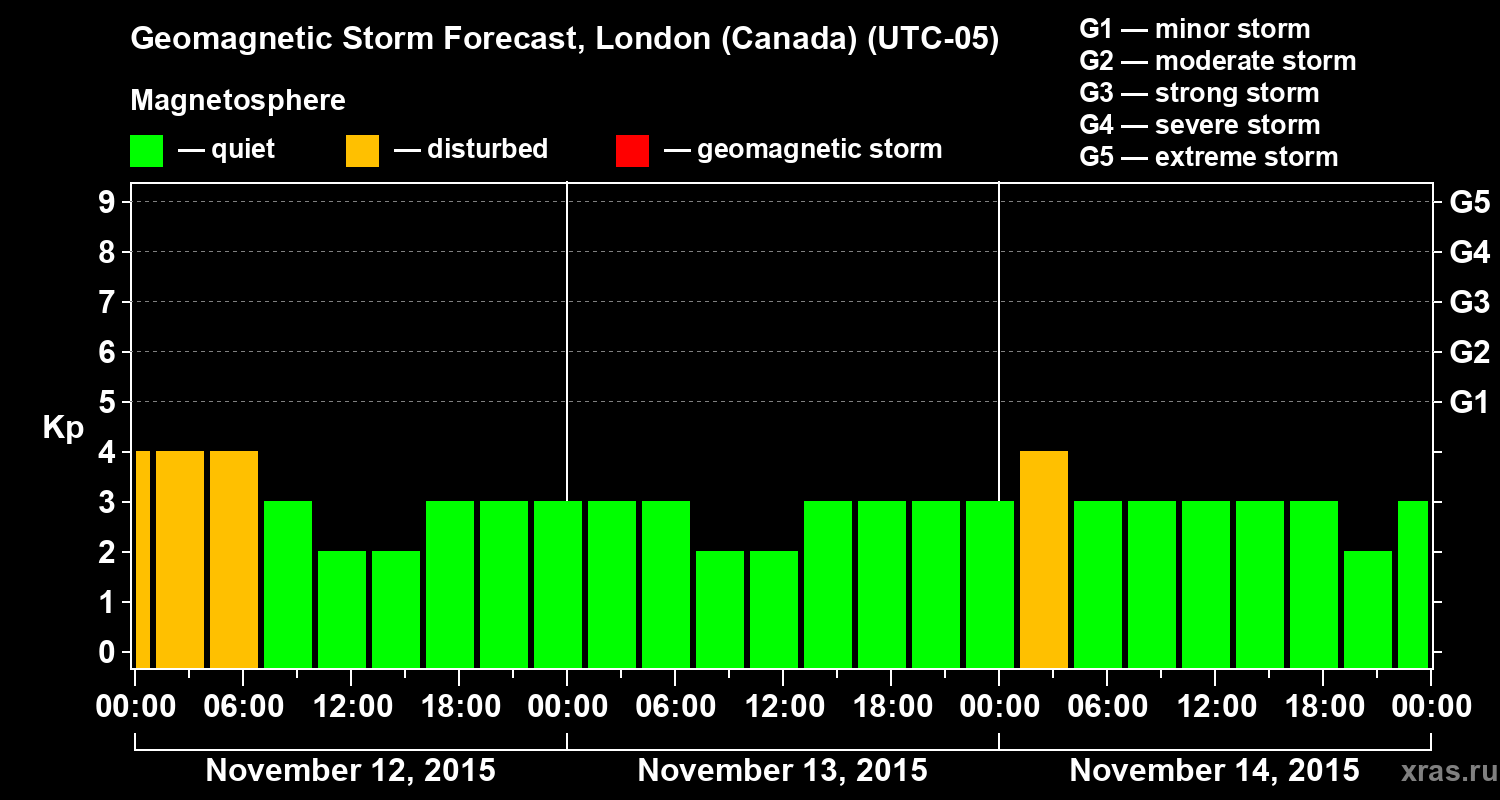 Geomagnetic storm forecast in London (Canada) for Nov 12, 2015