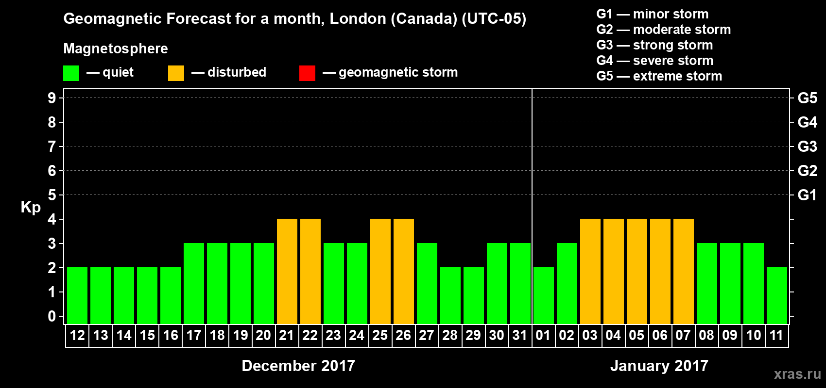Geomagnetic storm forecast in London (Canada) for Dec 12, 2016