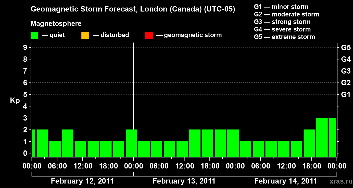 Geomagnetic activity forecast in London (Canada) — Feb 12, 2011