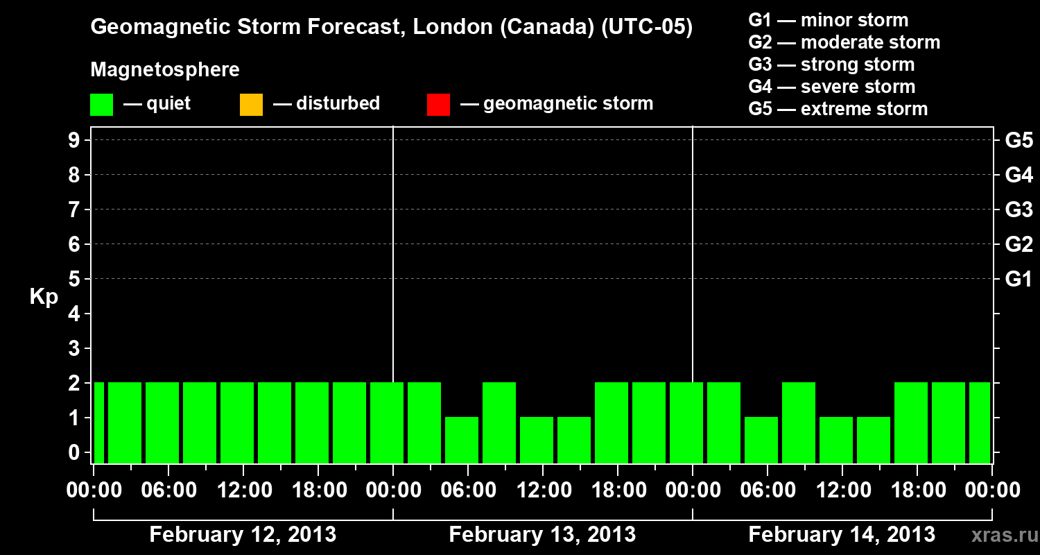 Geomagnetic storm forecast in London (Canada) for Feb 12, 2013