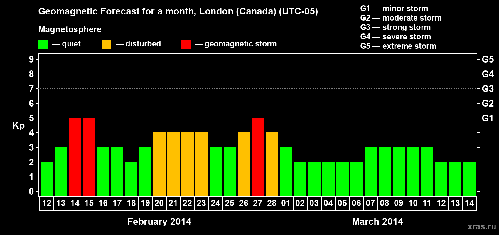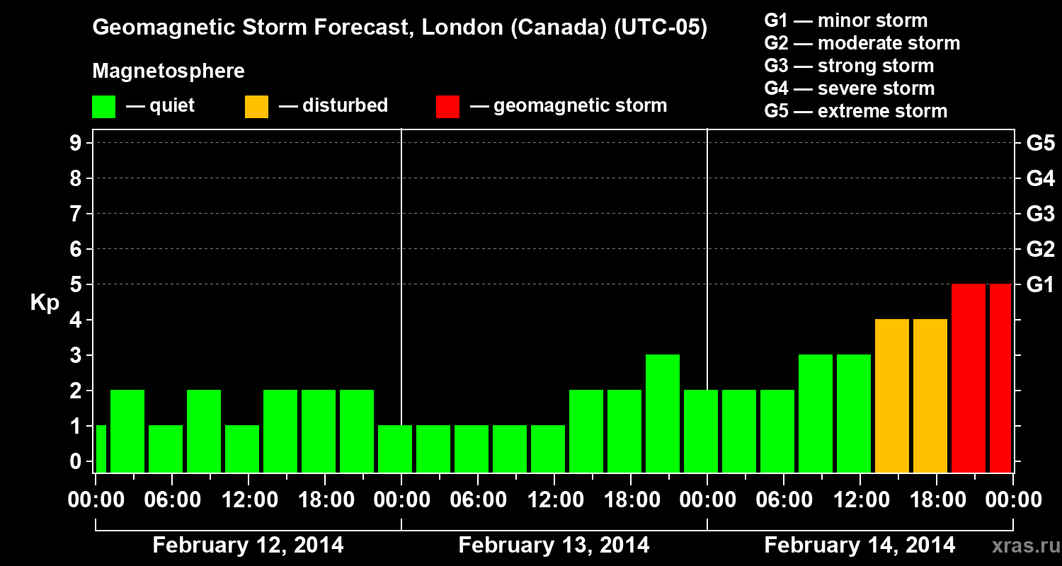 Geomagnetic storm forecast in London (Canada) for Feb 12, 2014