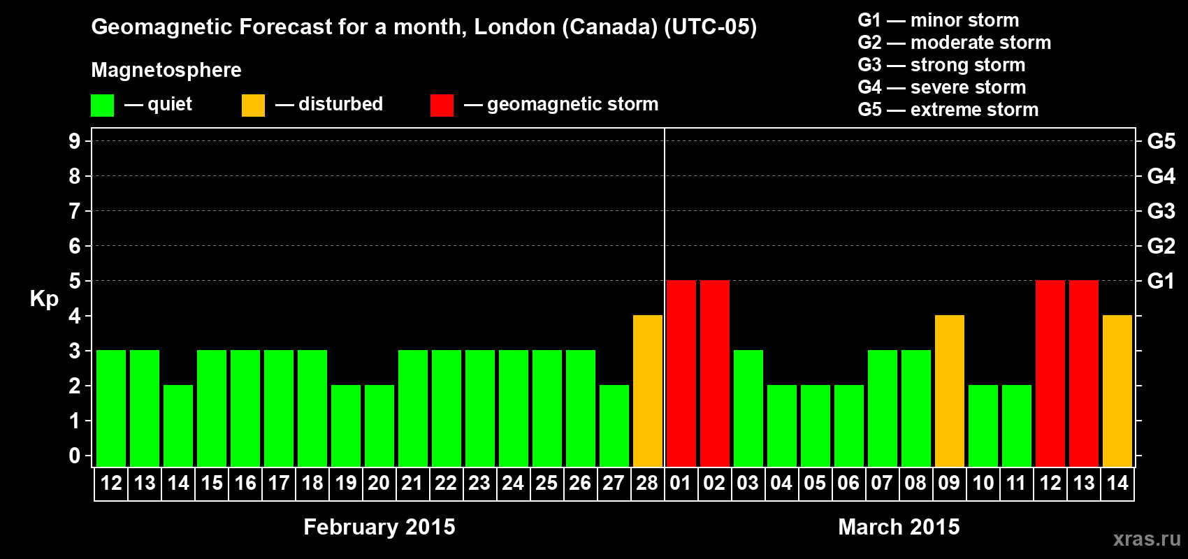 Geomagnetic storm forecast in London (Canada) for Feb 12, 2015