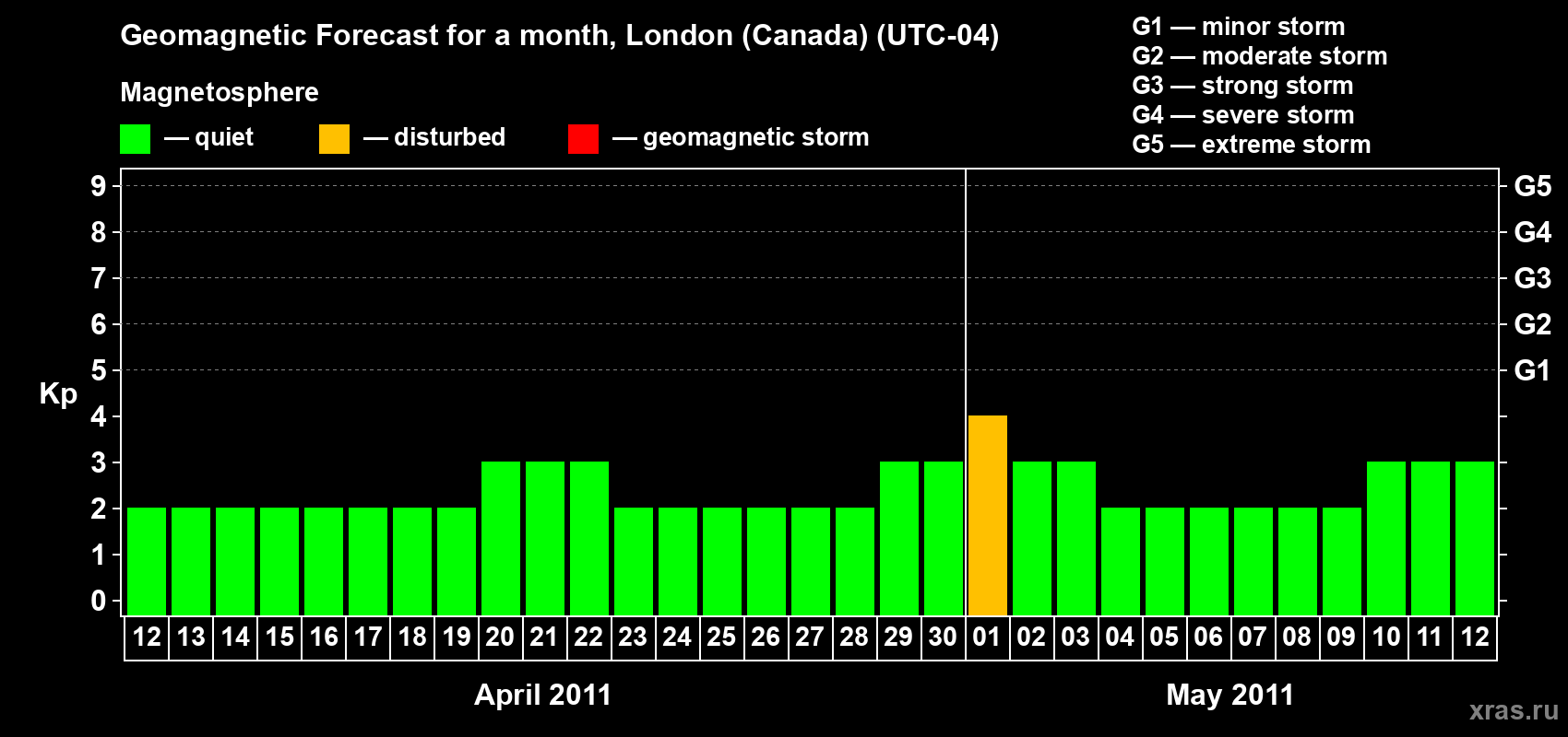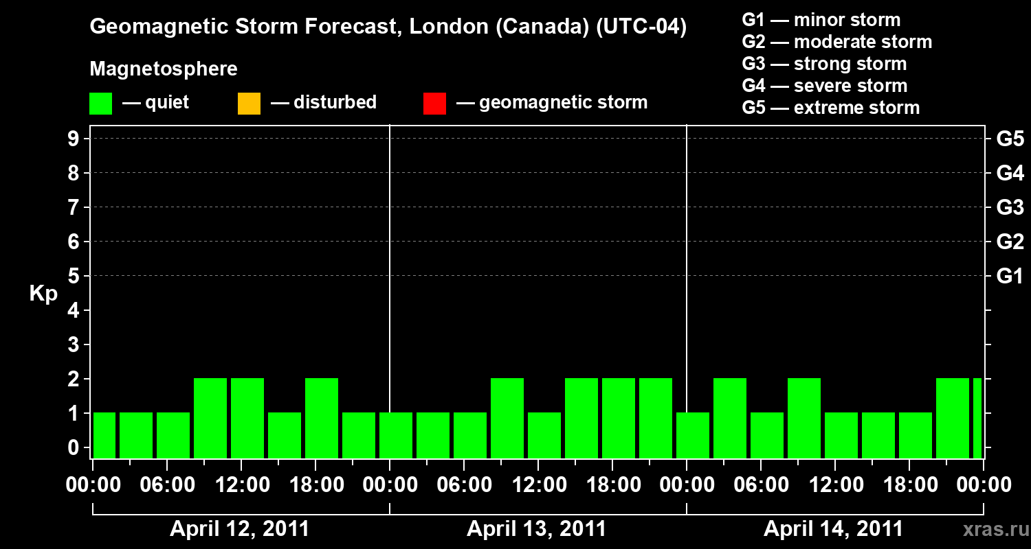 Geomagnetic storm forecast in London (Canada) for Apr 12, 2011