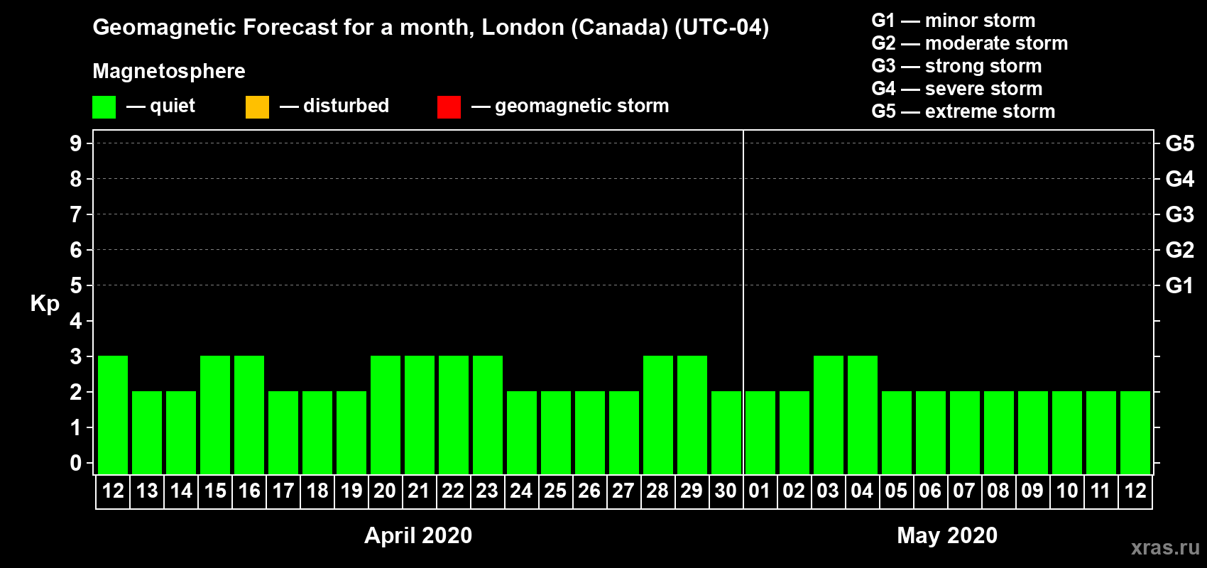 Geomagnetic storm forecast in London (Canada) for Apr 12, 2020