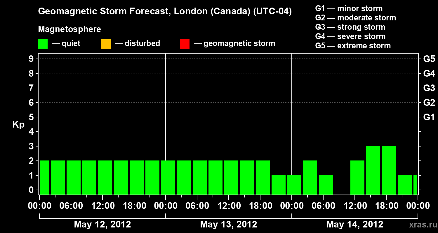 Geomagnetic activity forecast in London (Canada) — May 12, 2012