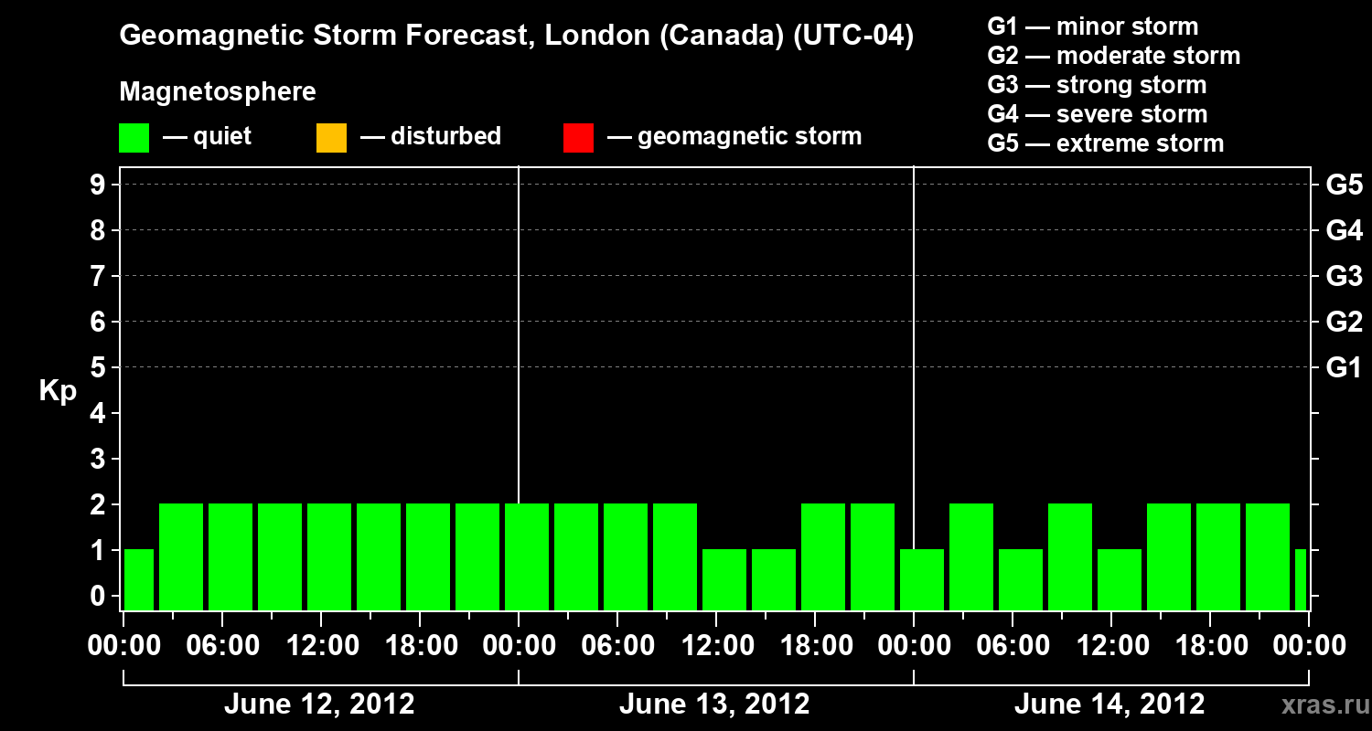 Geomagnetic storm forecast in London (Canada) for Jun 12, 2012