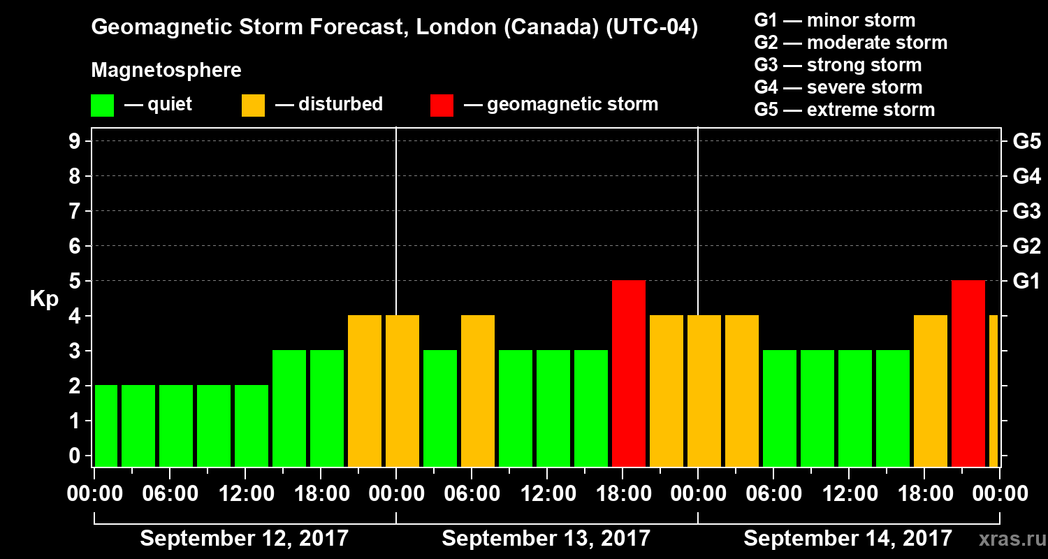 Geomagnetic storm forecast in London (Canada) for Sep 12, 2017